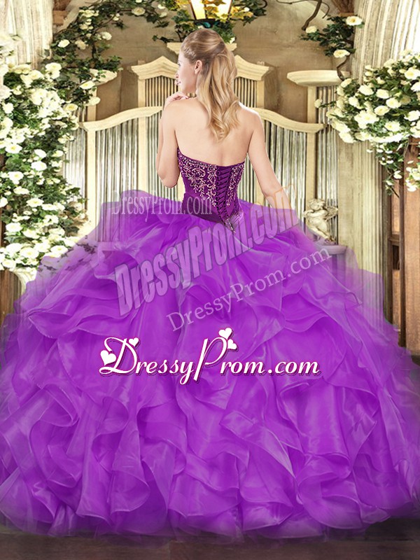 Sleeveless Lace Up Floor Length Beading and Ruffles Vestidos de Quinceanera