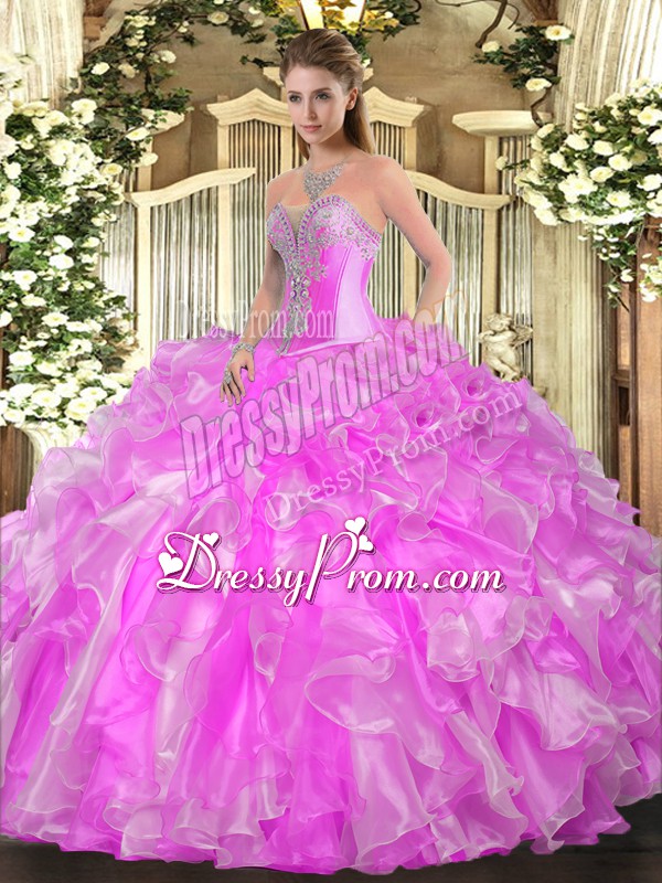 Lilac Sweetheart Lace Up Beading and Ruffles Sweet 16 Dresses Sleeveless