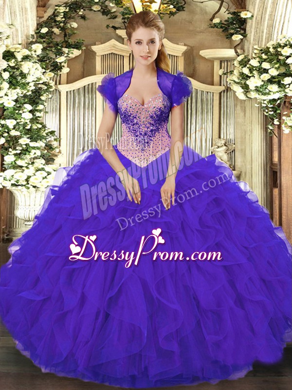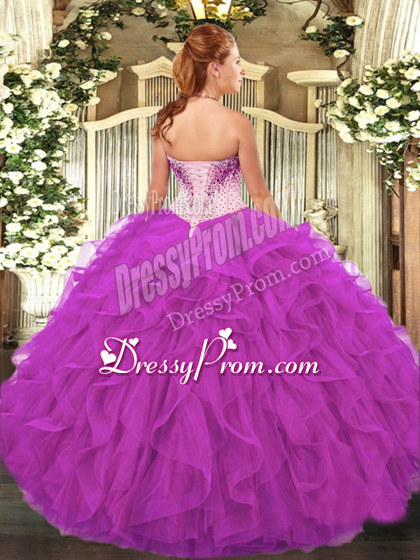 Sweet Purple Organza Lace Up Sweetheart Sleeveless Floor Length Quinceanera Gowns Beading and Ruffles