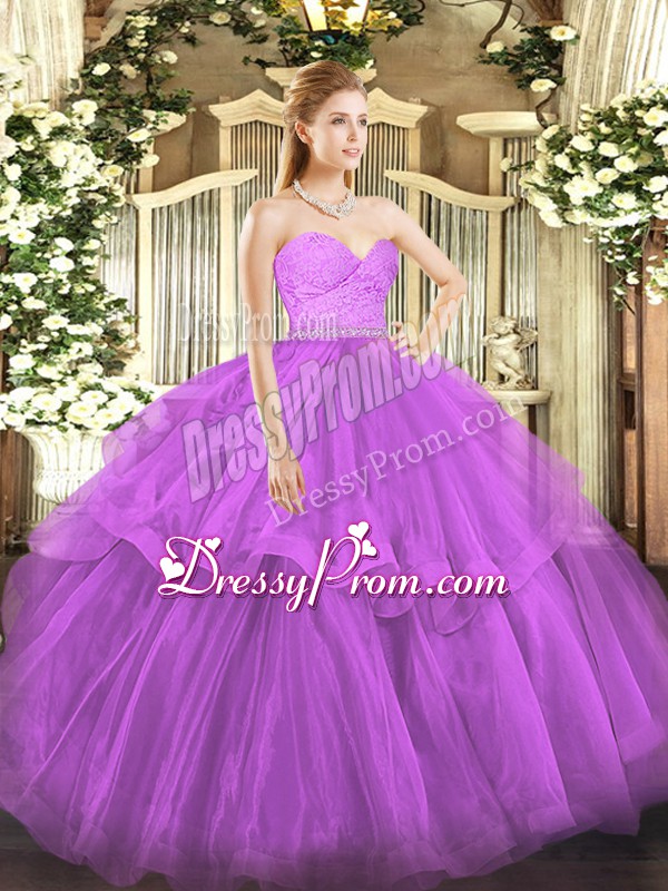 Neckline : SweetheartShown Color : FuchsiaSilhouette : Ball GownsSleeve Length : sleevelessBack Detail : ZipperFabric : TulleEmbellishment : Beading,Lace,Ruffled LayersOccasion : Military Ball,Sweet 16,QuinceaneraSeason : Spring,Summer,Fall,Winter