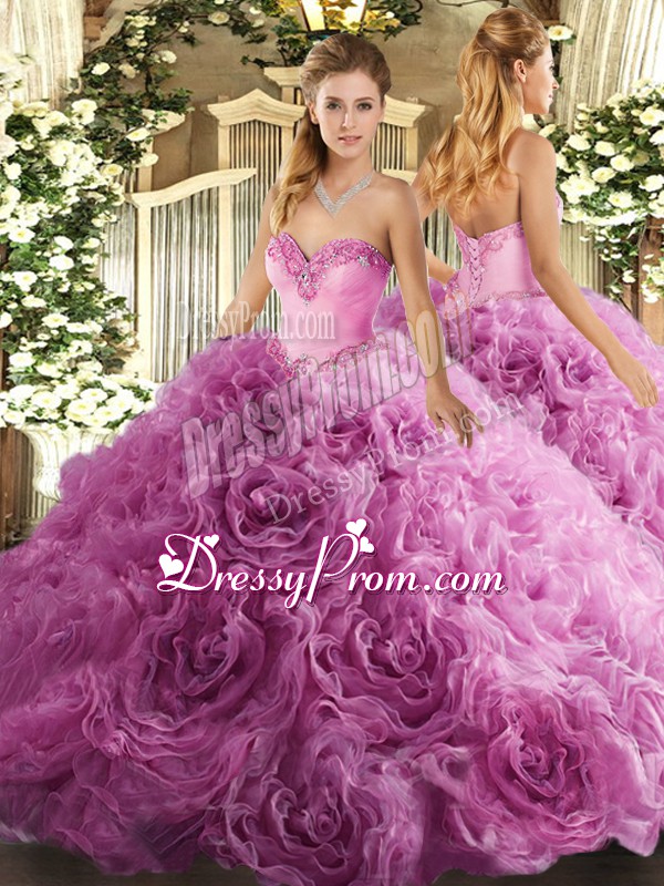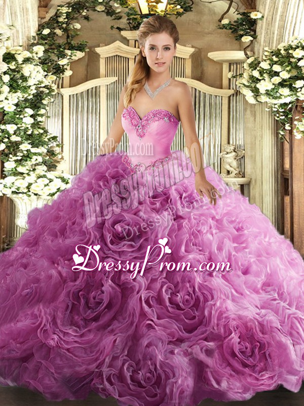 Neckline : SweetheartShown Color : Rose Pink Silhouette : Ball GownsSleeve Length : sleevelessHemline : floor lengthBack Detail : Lace upFabric : Fabric With Rolling FlowersEmbellishment : BeadingOccasion : Military Ball,Sweet 16,QuinceaneraSeason : Spring,Summer,Fall,Winter