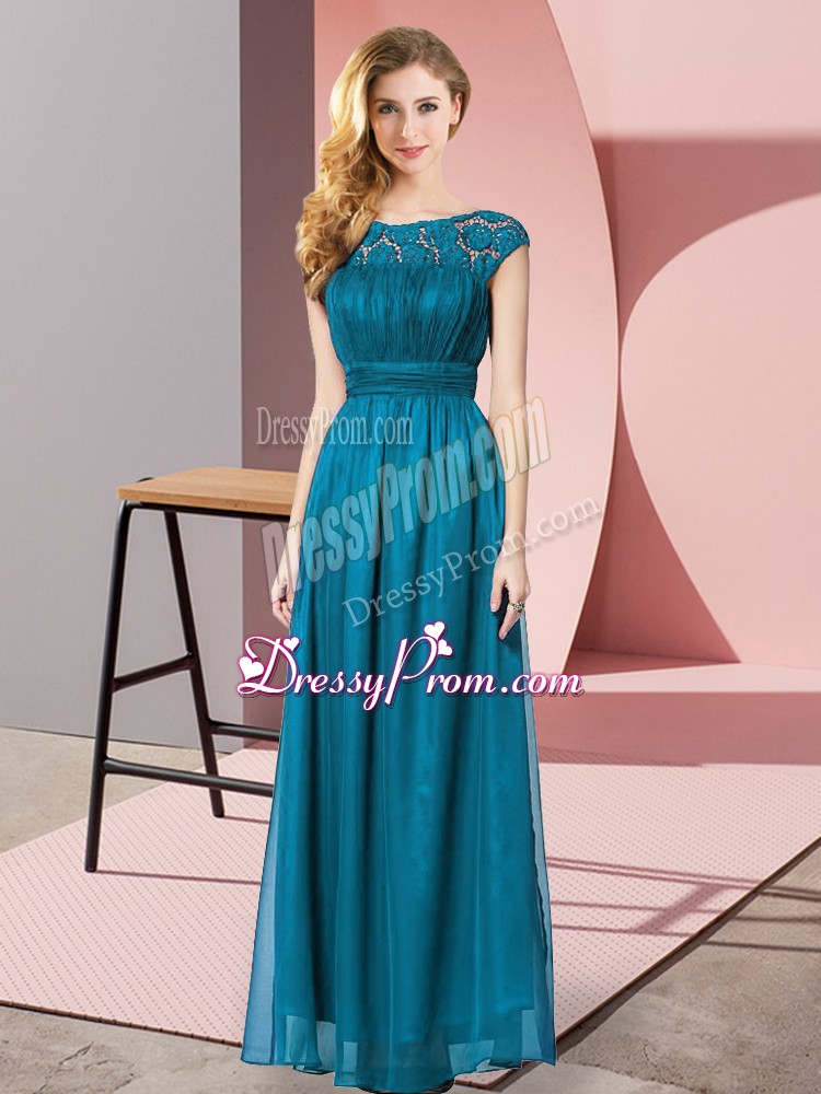 Neckline : ScoopShown Color : Teal Silhouette : EmpireSleeve Length : sleevelessHemline : floor lengthBack Detail : ZipperFabric : TulleEmbellishment : LaceOccasion : Prom,PartySeason : Spring,Summer,Fall,Winter