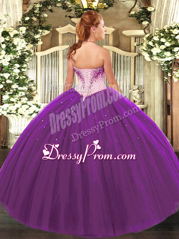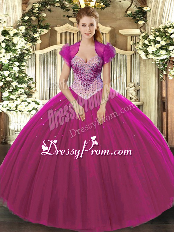 Tulle Sleeveless Floor Length Quinceanera Gowns and Beading