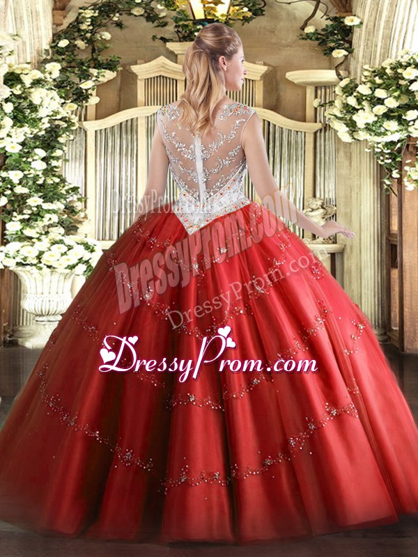 Ball Gowns Scoop Sleeveless Tulle Floor Length Zipper Beading and Appliques Vestidos de Quinceanera