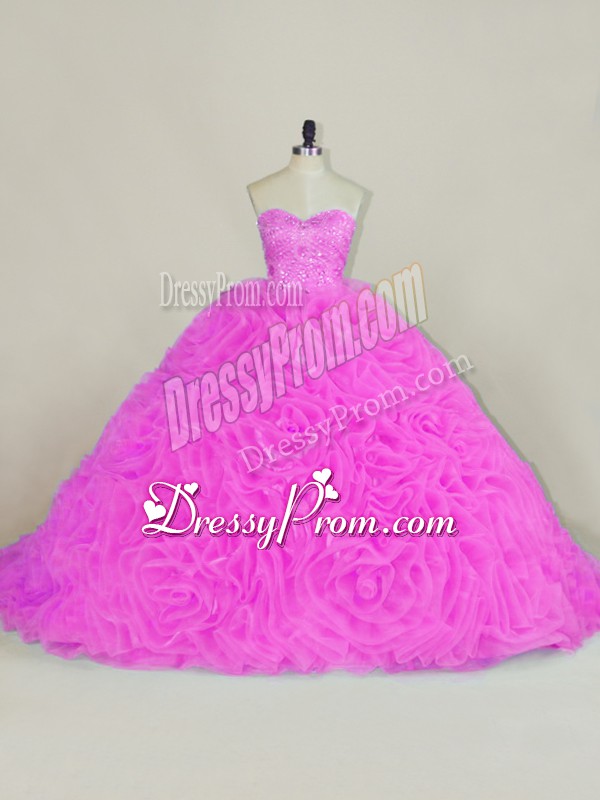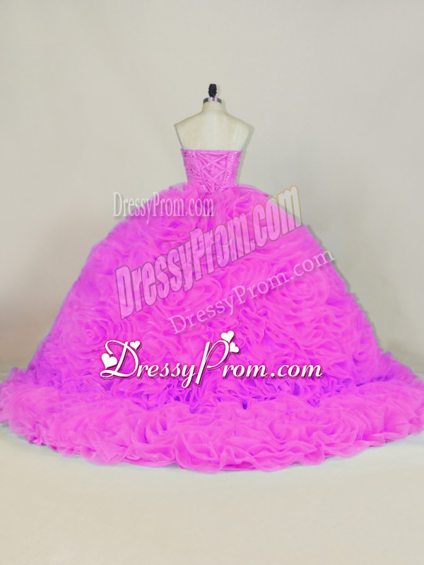 Neckline : SweetheartShown Color : LilacSilhouette : Ball GownsSleeve Length : sleevelessBack Detail : Lace upFabric : OrganzaEmbellishment : Beading,RufflesOccasion : Sweet 16,QuinceaneraSeason : Spring,Summer,Fall,Winter