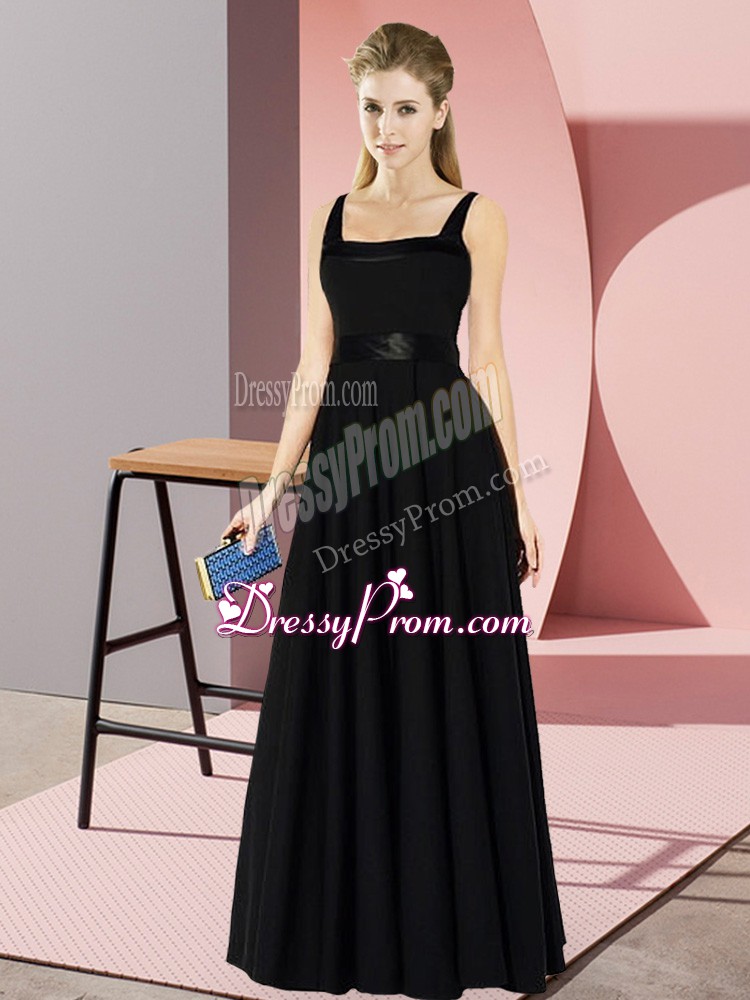 Neckline : SquareShown Color : BlackSilhouette : EmpireSleeve Length : sleevelessHemline : floor lengthBack Detail : ZipperFabric : ChiffonEmbellishment : BeltOccasion : Wedding PartySeason : Spring,Summer,Fall,Winter