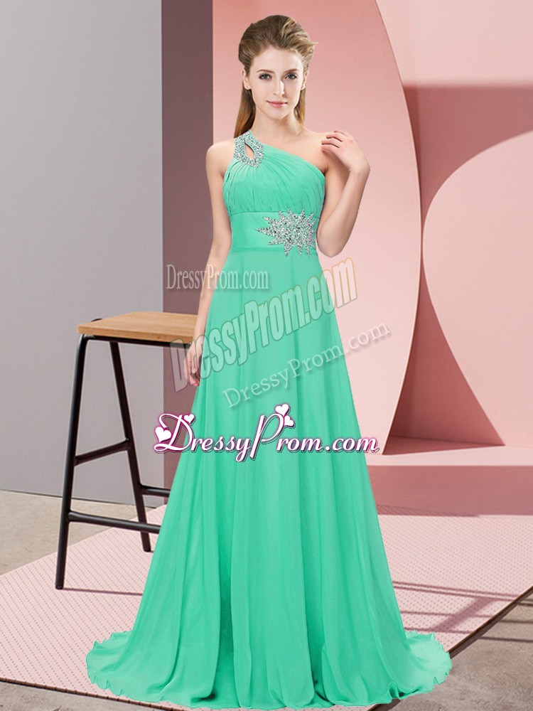 Neckline : One shoulderShown Color : Apple GreenSilhouette : EmpireSleeve Length : sleevelessHemline : floor lengthBack Detail : Lace upFabric : ChiffonEmbellishment : BeadingOccasion : Prom,Party,Military BallSeason : Spring,Summer,Fall,Winter