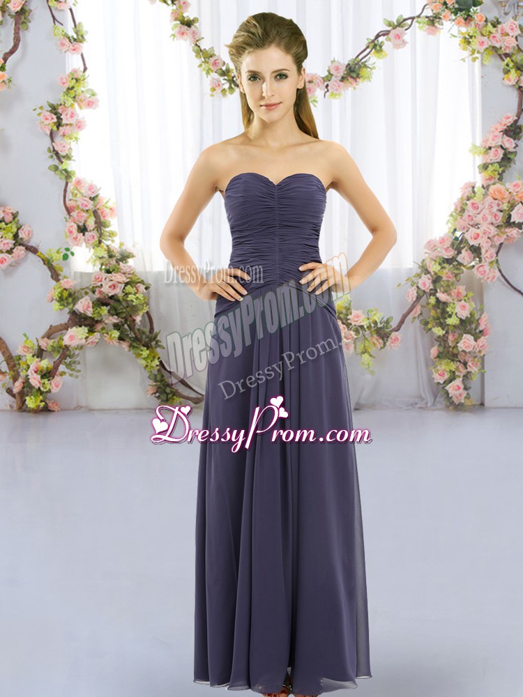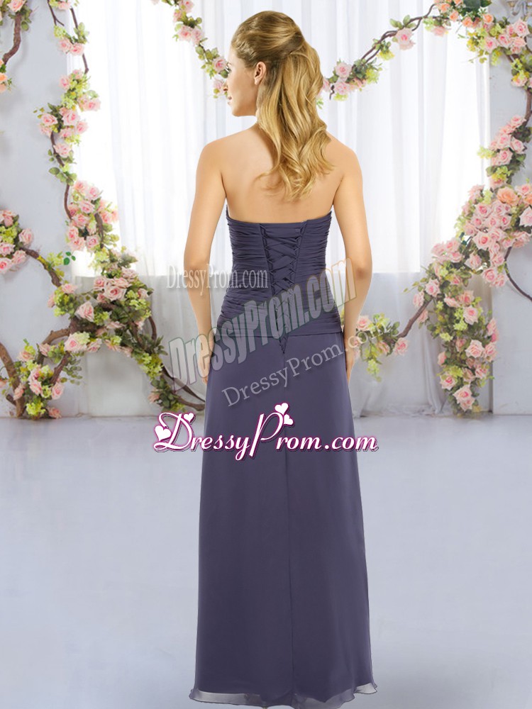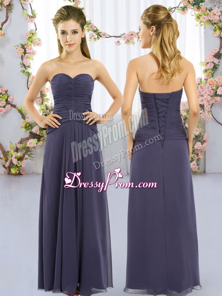 Neckline : SweetheartShown Color : Navy BlueSilhouette : EmpireSleeve Length : sleevelessHemline : floor lengthBack Detail : Lace upFabric : ChiffonEmbellishment : RuchingOccasion : Wedding PartySeason : Spring,Summer,Fall,Winter