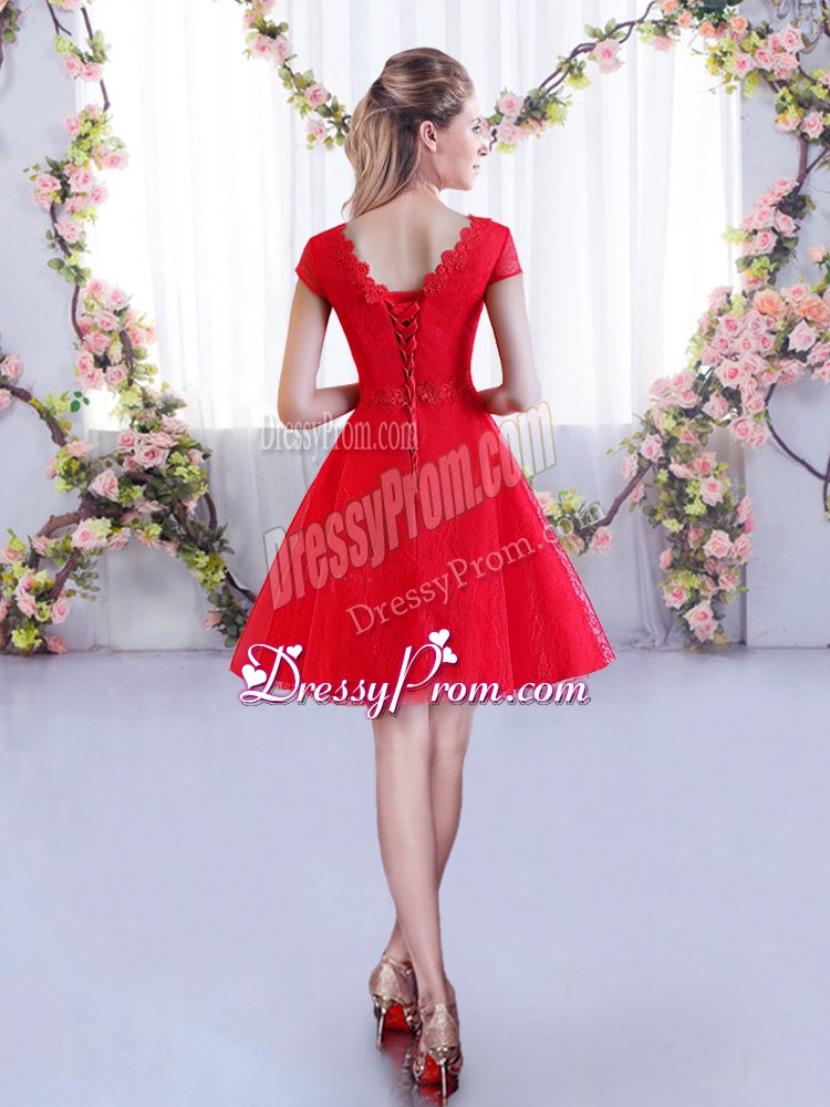 Cap Sleeves Lace Up Mini Length Lace Court Dresses for Sweet 16