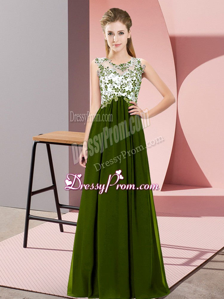Neckline : ScoopShown Color : Olive GreenSilhouette : EmpireSleeve Length : sleevelessHemline : floor lengthBack Detail : ZipperFabric : ChiffonEmbellishment : Beading,AppliquesOccasion : Wedding PartySeason : Spring,Summer,Fall,Winter
