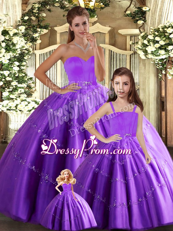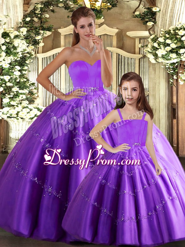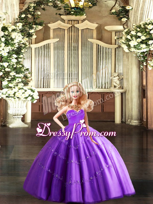 Neckline : SweetheartShown Color : Eggplant PurpleSilhouette : Ball GownsSleeve Length : sleevelessHemline : floor lengthBack Detail : Lace upFabric : TulleEmbellishment : BeadingOccasion : Sweet 16,QuinceaneraSeason : Spring,Summer,Fall,Winter