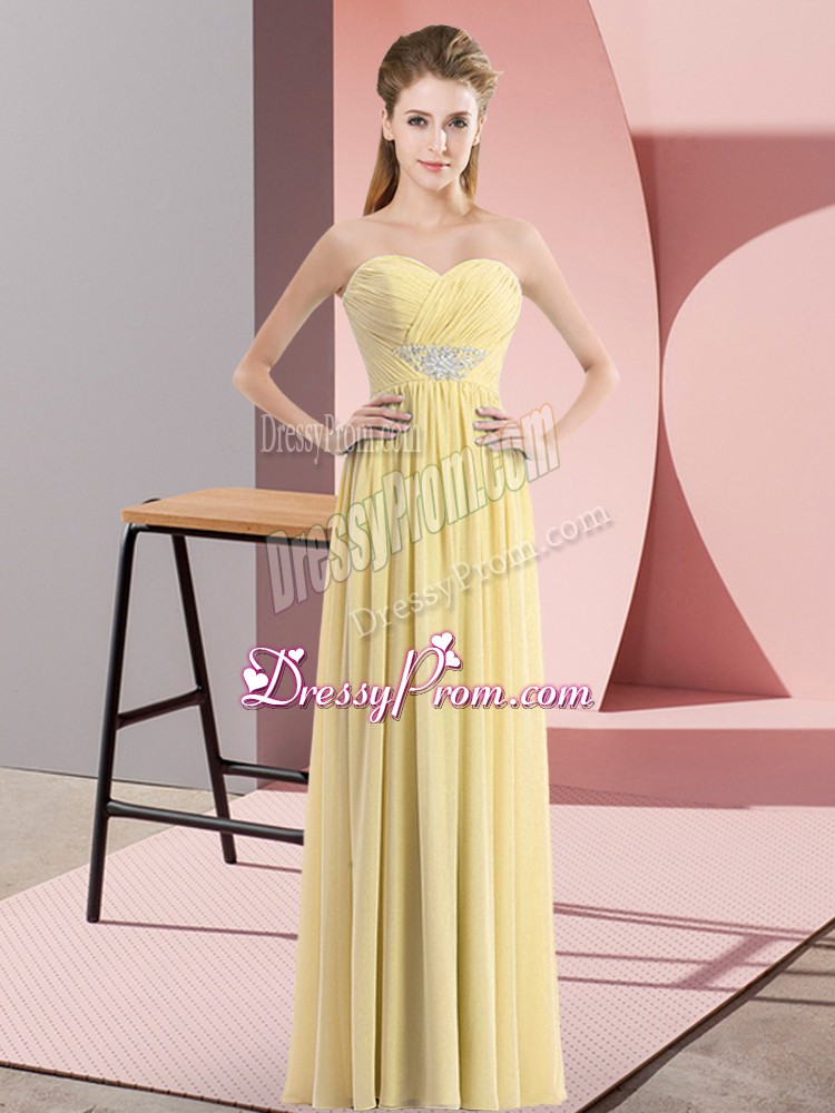 Neckline : SweetheartShown Color : YellowSilhouette : EmpireSleeve Length : sleevelessHemline : floor lengthBack Detail : ZipperFabric : ChiffonEmbellishment : BeadingOccasion : Prom,PartySeason : Spring,Summer,Fall,Winter