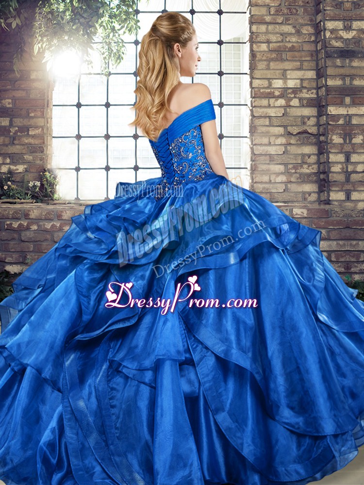 Neckline : Off the shoulder Shown Color : Apple Green Silhouette : Ball Gowns Sleeve Length : sleeveless Hemline : floor length Back Detail : Lace up Fabric : Organza Embellishment : Beading,Ruffles Occasion : Military Ball,Sweet 16,Quinceanera Season : Spring,Summer,Fall,Winter