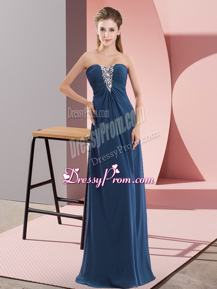 Neckline : SweetheartShown Color : Navy BlueSilhouette : EmpireSleeve Length : sleevelessHemline : floor lengthBack Detail : ZipperFabric : ChiffonEmbellishment : BeadingOccasion : Prom,PartySeason : Spring,Summer,Fall,Winter