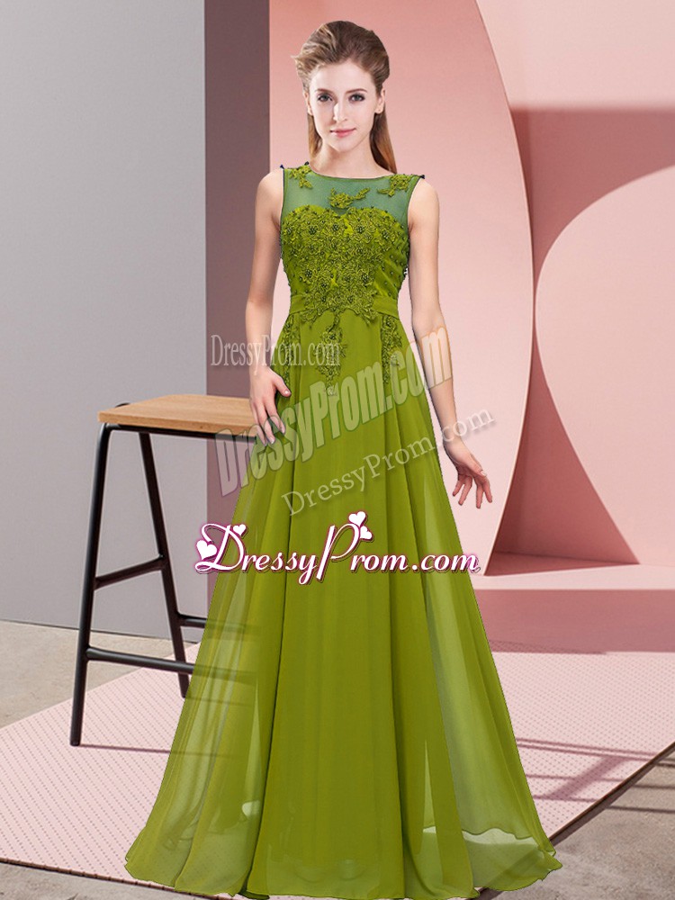 Neckline : ScoopShown Color : Olive GreenSilhouette : EmpireSleeve Length : sleevelessHemline : floor lengthBack Detail : ZipperFabric : ChiffonEmbellishment : Beading,AppliquesOccasion : Wedding PartySeason : Spring,Summer,Fall,Winter