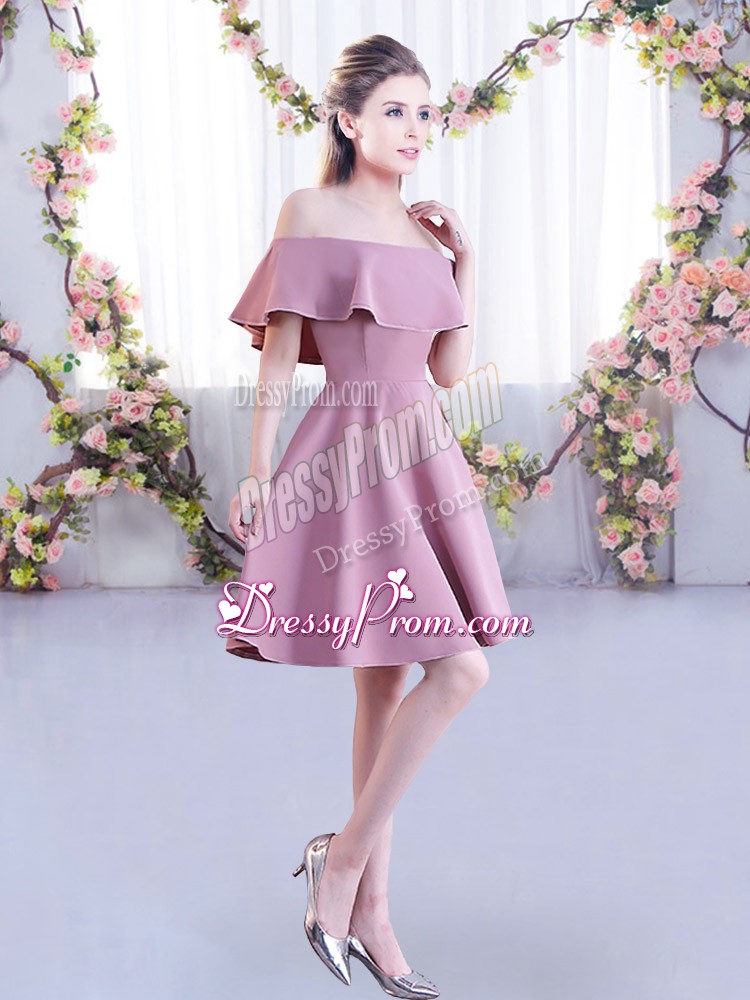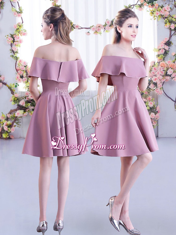 Hot Selling Mini Length Pink Quinceanera Dama Dress Off The Shoulder Short Sleeves Zipper