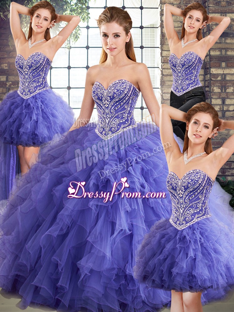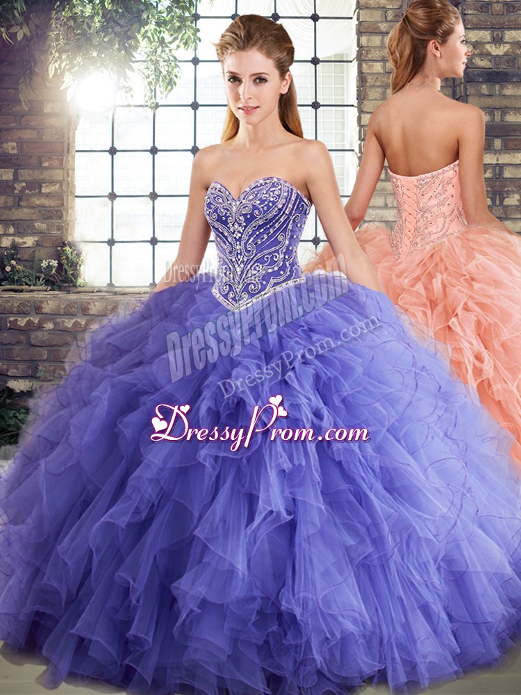Custom Designed Sleeveless Beading and Ruffles Lace Up Quinceanera Dress