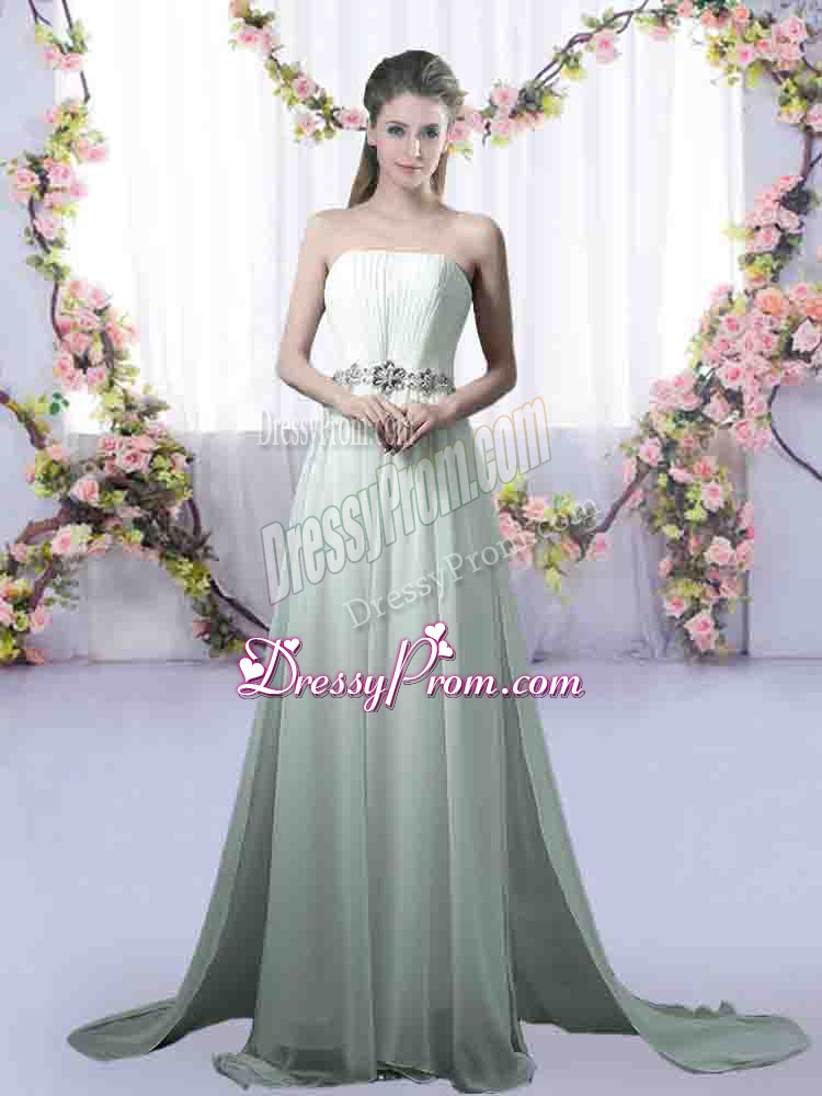 Fashion Strapless Sleeveless Chiffon Damas Dress Beading Brush Train
