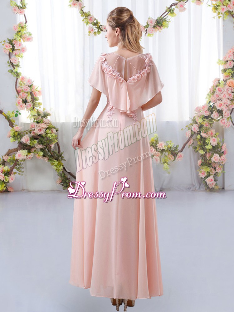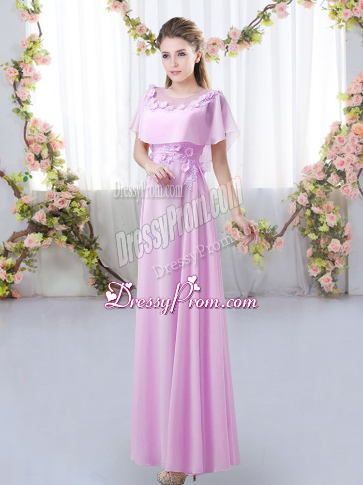 Beautiful Lilac Short Sleeves Floor Length Appliques Zipper Quinceanera Dama Dress