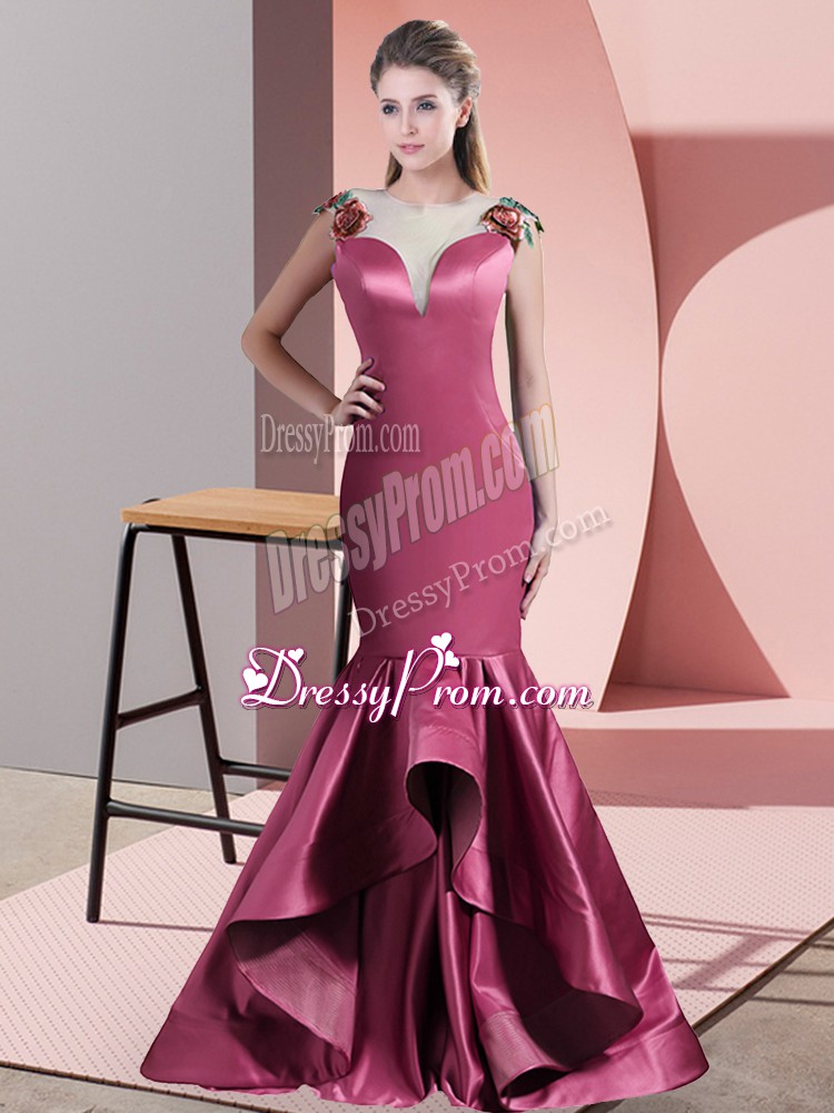 Neckline : ScoopShown Color : RedSilhouette : MermaidSleeve Length : sleevelessBack Detail : Side zipperFabric : SatinEmbellishment : Beading,AppliquesOccasion : Prom,Party,Military BallSeason : Spring,Summer,Fall,Winter