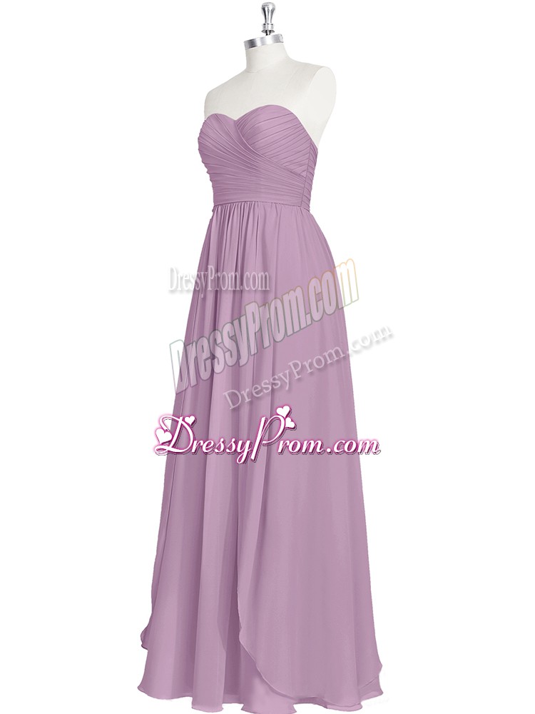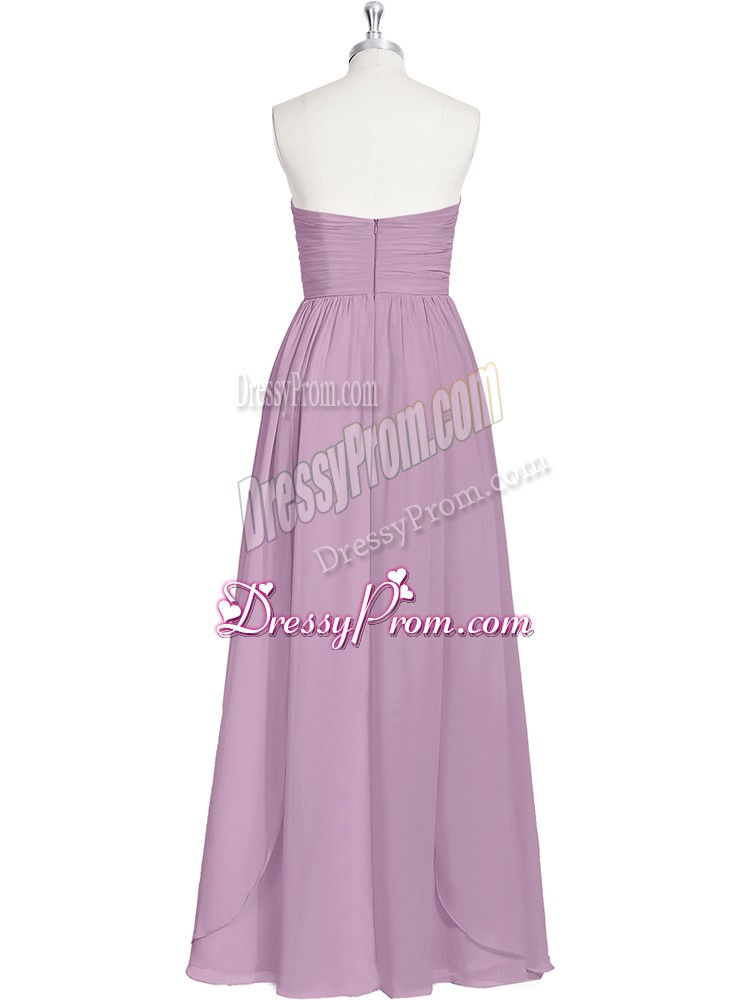 Neckline : SweetheartShown Color : PurpleSilhouette : A-lineSleeve Length : sleevelessHemline : floor lengthBack Detail : ZipperFabric : ChiffonEmbellishment : RuchingOccasion : Prom,PartySeason : Spring,Summer,Fall,Winter
