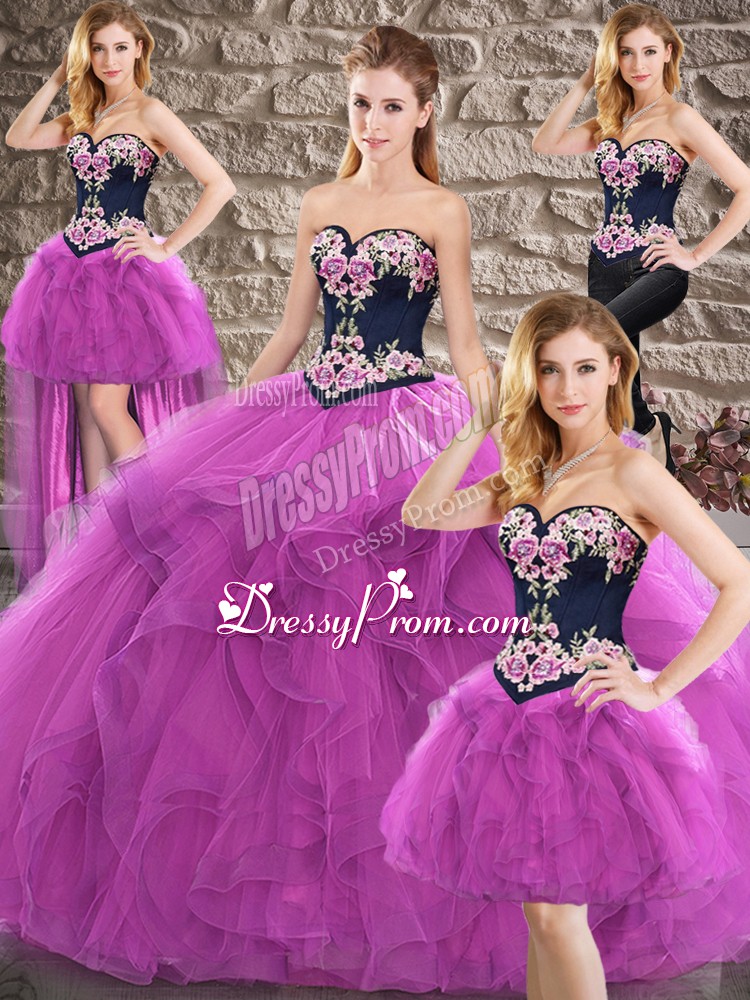 Exquisite Purple Tulle Lace Up Sweet 16 Dresses Sleeveless Floor Length Beading and Embroidery