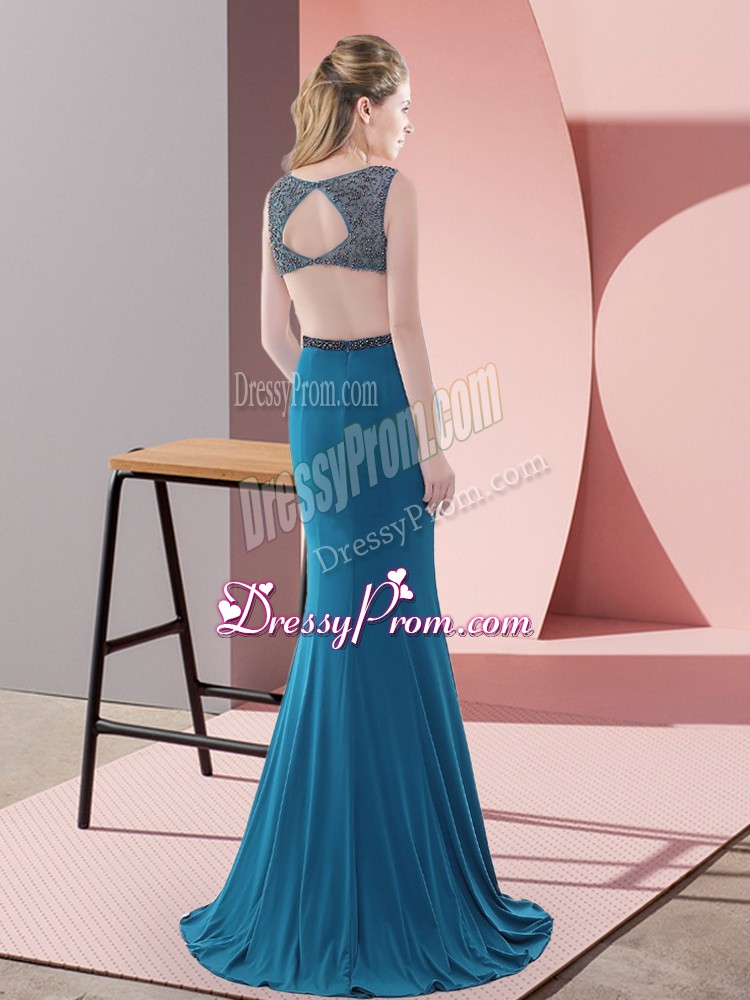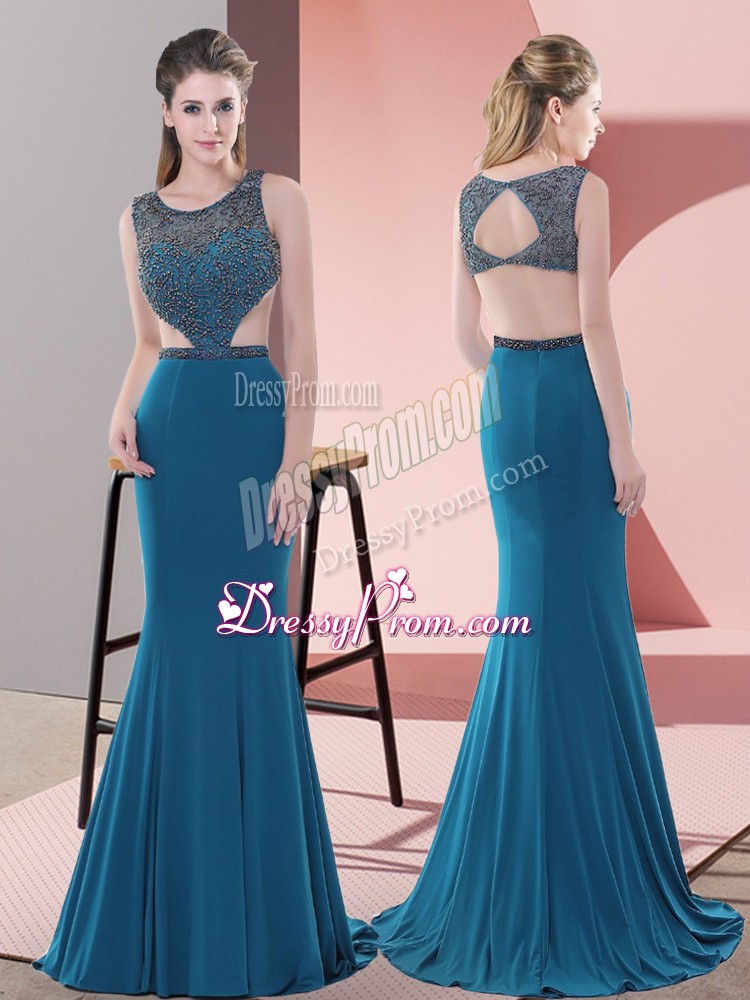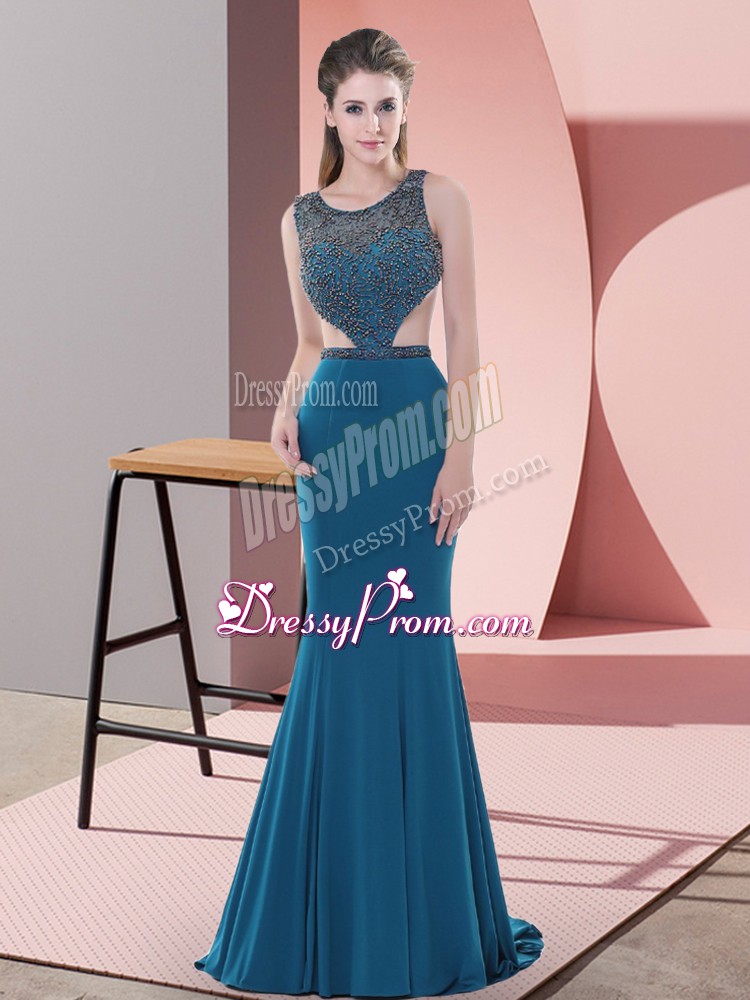 Neckline : ScoopShown Color : BlueSilhouette : Column/SheathSleeve Length : sleevelessBack Detail : BacklessFabric : ChiffonEmbellishment : BeadingOccasion : Prom,Party,Military BallSeason : Spring,Summer,Fall,Winter