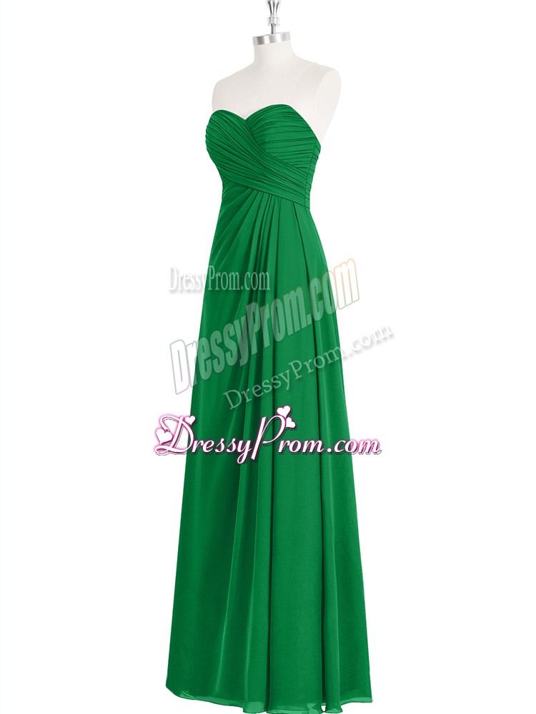 Neckline : SweetheartShown Color : GreenSilhouette : A-lineSleeve Length : sleevelessHemline : floor lengthBack Detail : ZipperFabric : ChiffonEmbellishment : RuchingOccasion : Prom,PartySeason : Spring,Summer,Fall,Winter