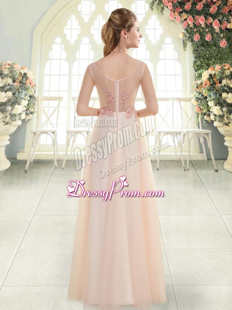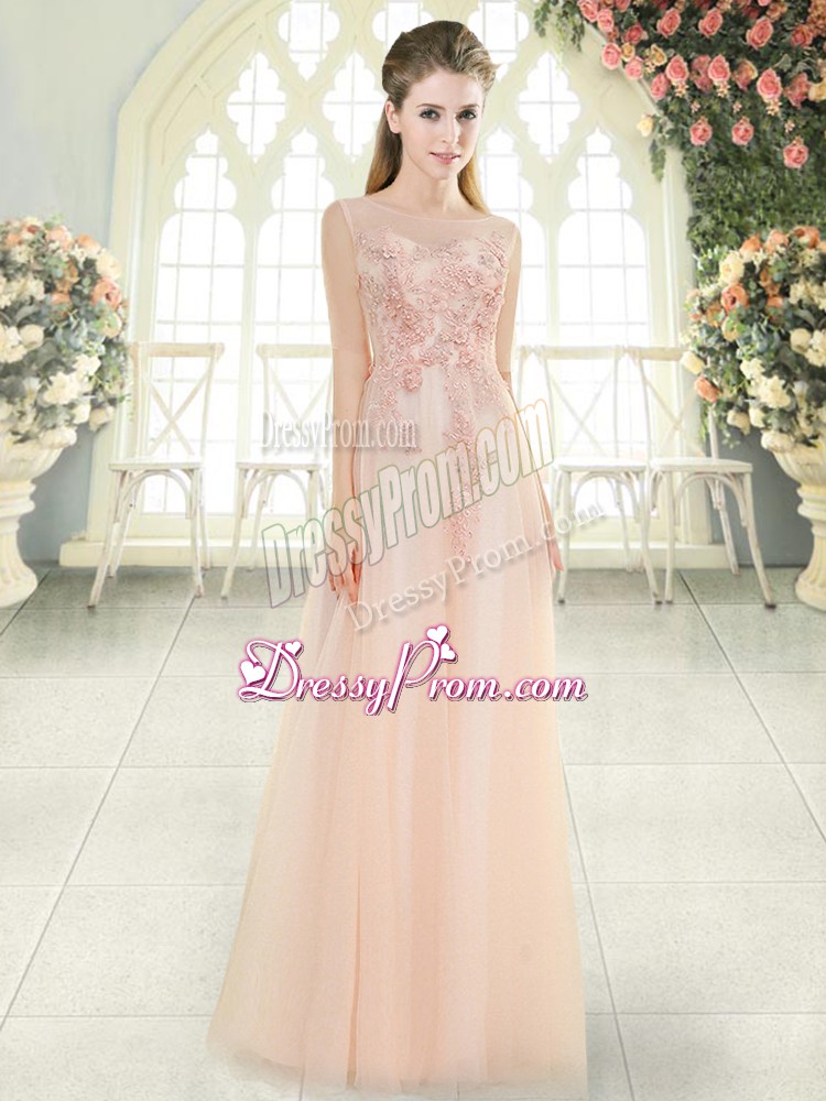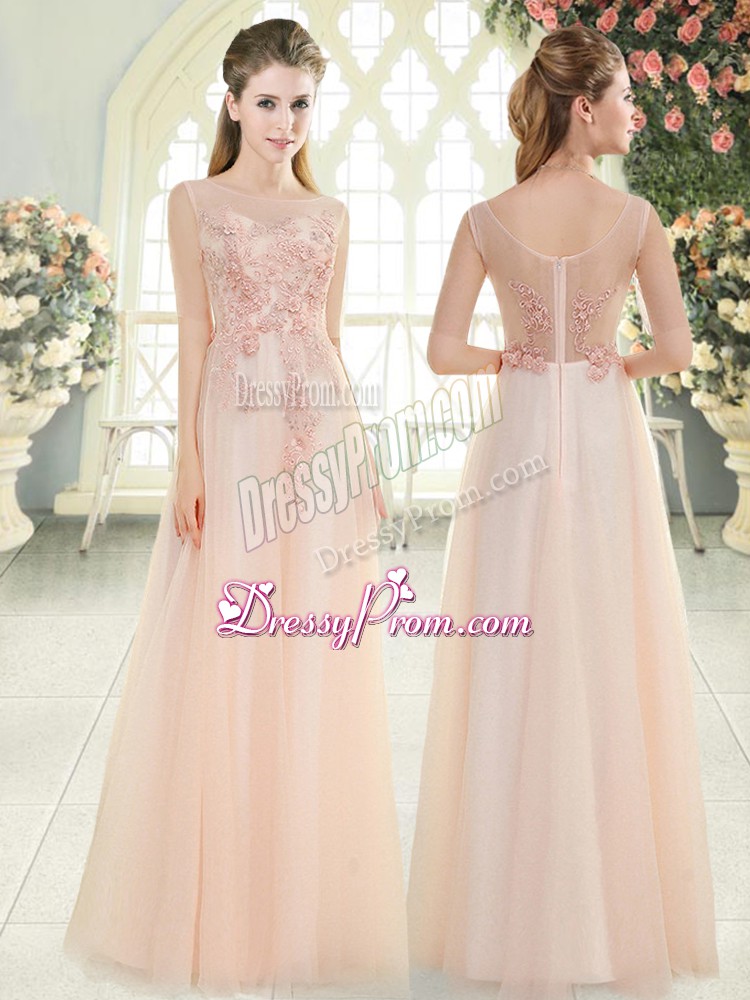 Neckline : ScoopShown Color : Pink Silhouette : EmpireSleeve Length : sleevelessHemline : floor lengthBack Detail : ZipperFabric : TulleEmbellishment : Beading,Lace,AppliquesOccasion : Prom,Party,Military BallSeason : Spring,Summer,Fall,Winter