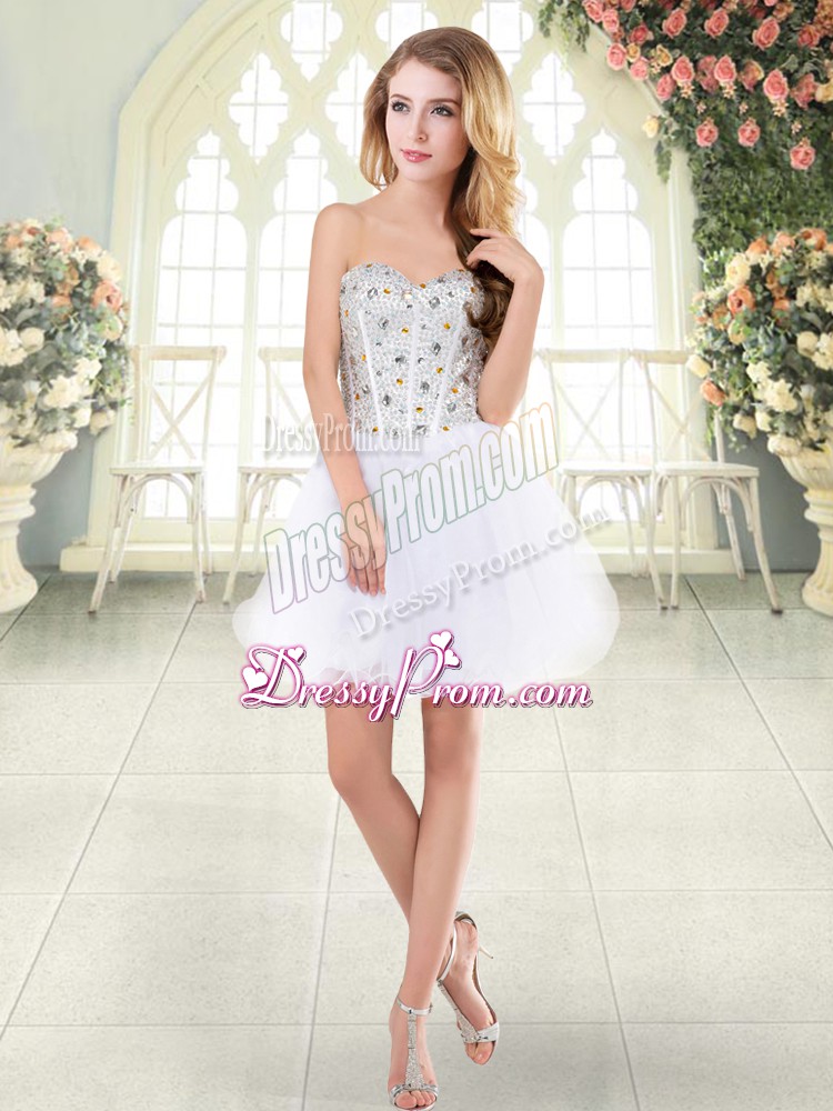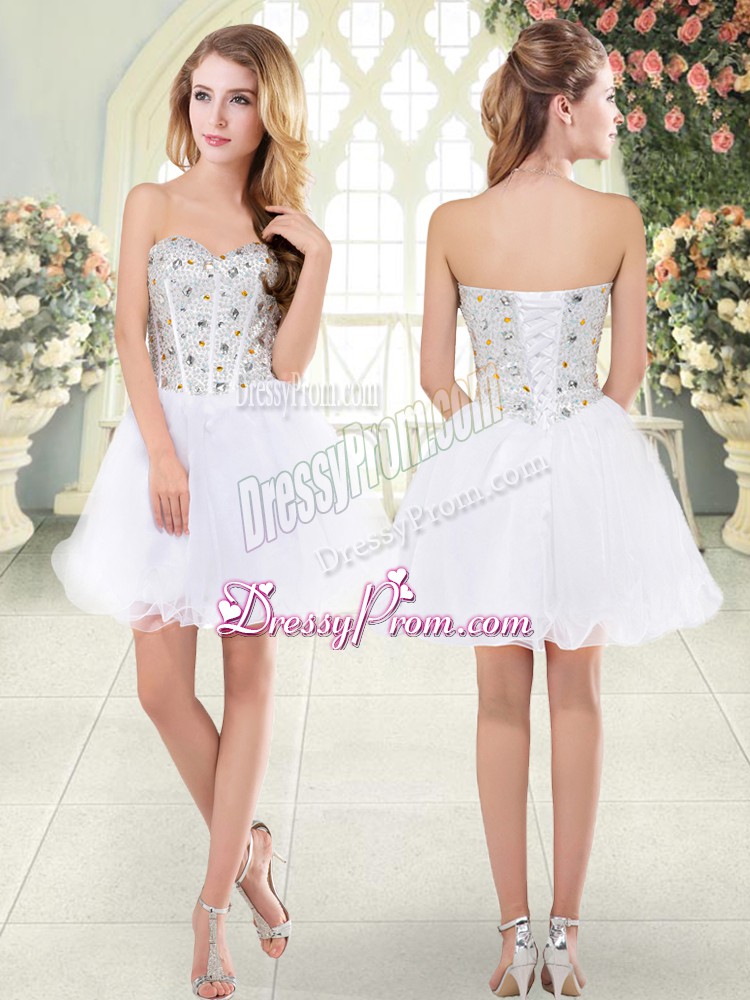 Neckline : SweetheartShown Color : WhiteSilhouette : A-lineSleeve Length : sleevelessHemline : mini lengthBack Detail : Lace upFabric : TulleEmbellishment : BeadingOccasion : Prom,PartySeason : Spring,Summer,Fall