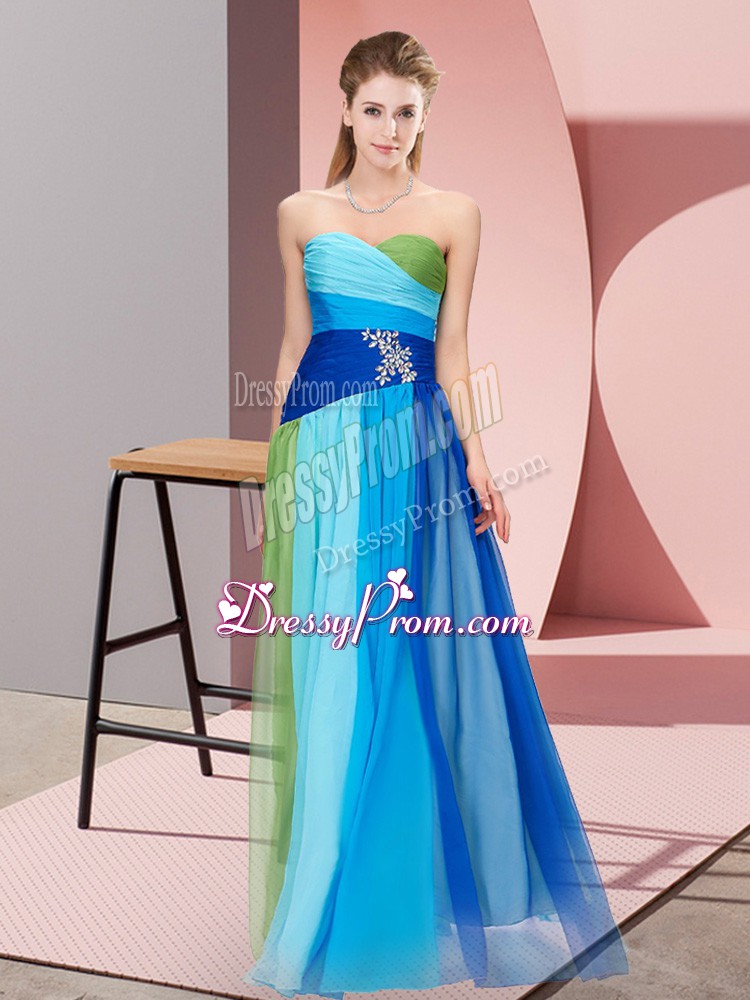 Neckline : SweetheartShown Color : Multi-colorSilhouette : EmpireSleeve Length : sleevelessHemline : floor lengthBack Detail : Lace upFabric : ChiffonEmbellishment : BeadingOccasion : Prom,PartySeason : Spring,Summer,Fall,Winter