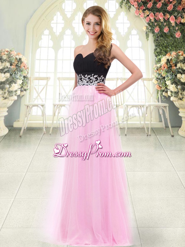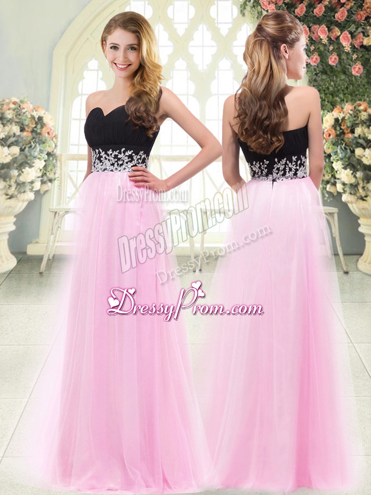 Neckline : SweetheartShown Color : Rose Pink Silhouette : EmpireSleeve Length : sleevelessHemline : floor lengthBack Detail : ZipperFabric : TulleEmbellishment : AppliquesOccasion : Prom,PartySeason : Spring,Summer,Fall,Winter