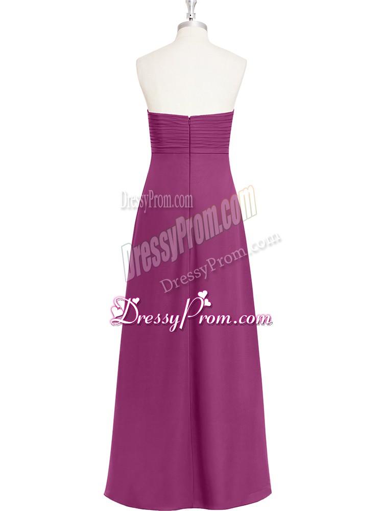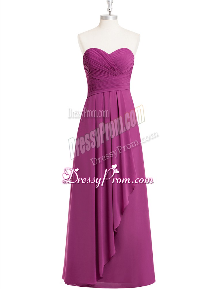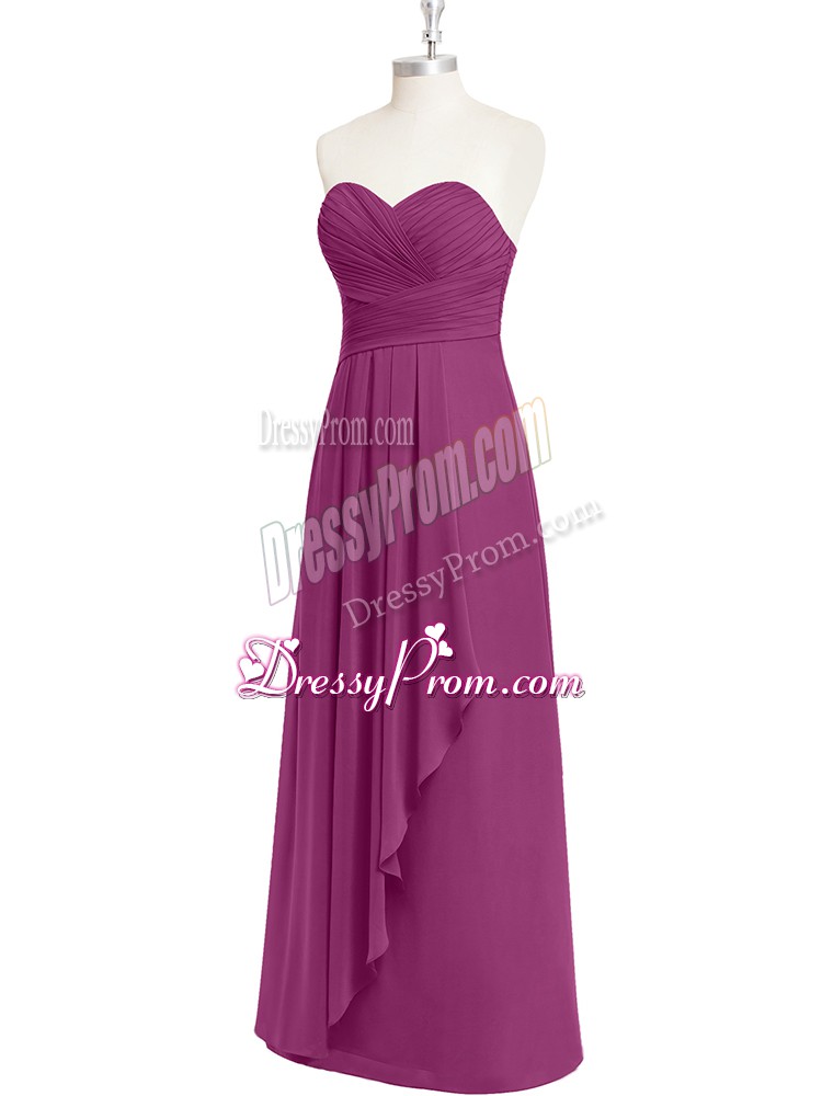 Neckline : SweetheartShown Color : FuchsiaSilhouette : EmpireSleeve Length : sleevelessHemline : floor lengthBack Detail : ZipperFabric : ChiffonEmbellishment : RuchingOccasion : Prom,Party,Military BallSeason : Spring,Summer,Fall,Winter