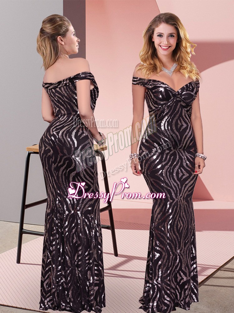 Neckline : Off the shoulderShown Color : Navy BlueSilhouette : MermaidSleeve Length : sleevelessHemline : floor lengthBack Detail : ZipperFabric : SequinedEmbellishment : RuchingOccasion : Prom,PartySeason : Spring,Summer,Fall,Winter