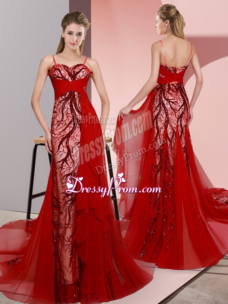 Neckline : Spaghetti strapsShown Color : RedSilhouette : EmpireSleeve Length : sleevelessBack Detail : Lace upFabric : SatinEmbellishment : Beading,LaceOccasion : Prom,PartySeason : Spring,Summer,Fall,Winter