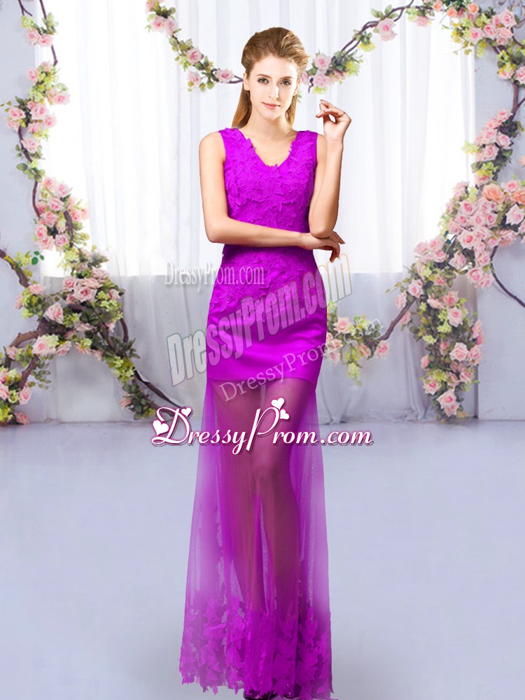Neckline : V-neckShown Color : PurpleSilhouette : Column/SheathSleeve Length : sleevelessHemline : floor lengthBack Detail : Lace upFabric : TulleEmbellishment : LaceOccasion : Prom,Party,Wedding PartySeason : Spring,Summer,Fall,Winter