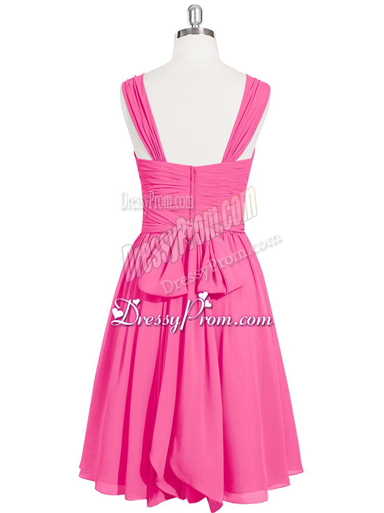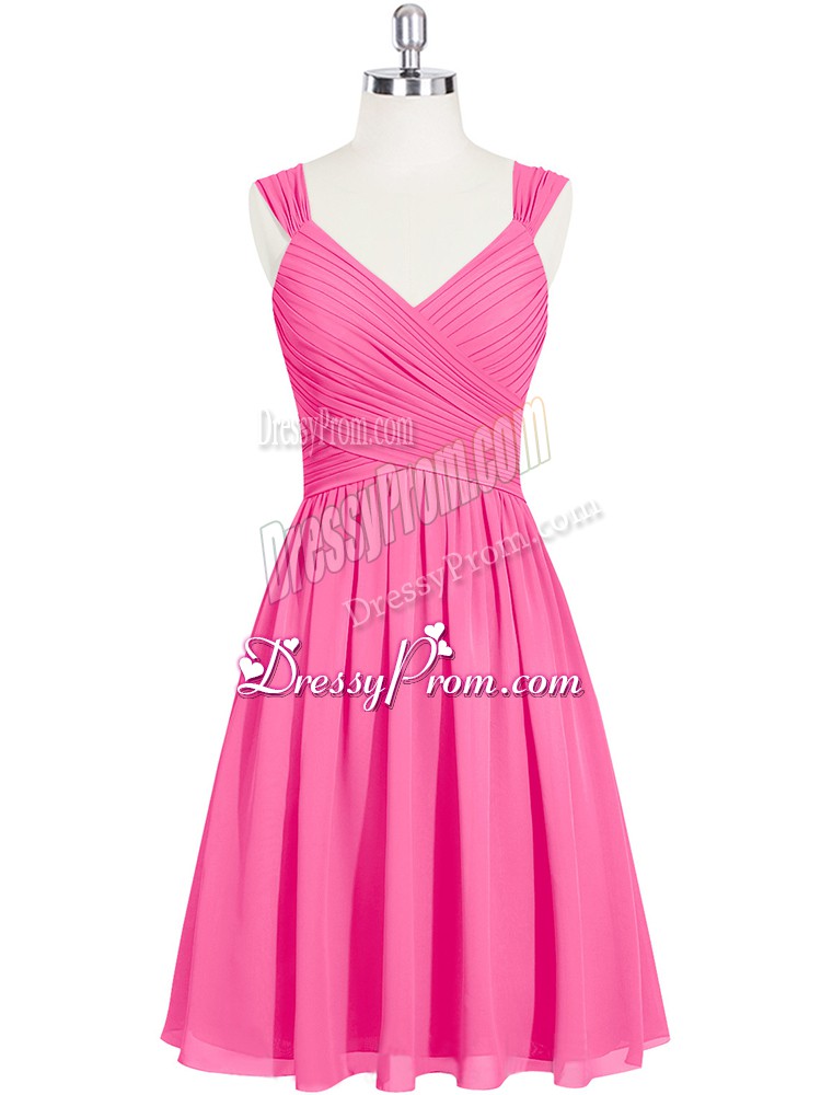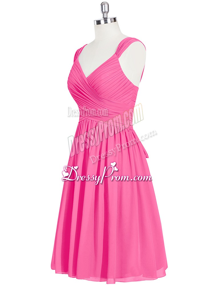 Neckline : StrapsShown Color : Pink Silhouette : A-lineSleeve Length : sleevelessHemline : mini lengthBack Detail : ZipperFabric : ChiffonEmbellishment : RuchingOccasion : Prom,PartySeason : Spring,Summer,Fall