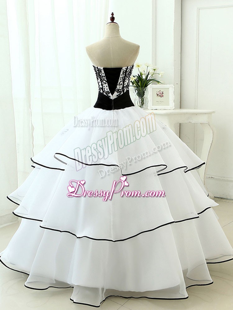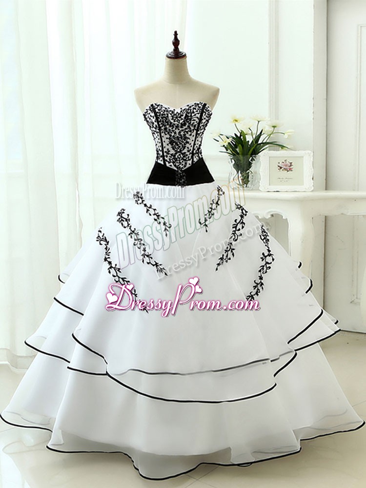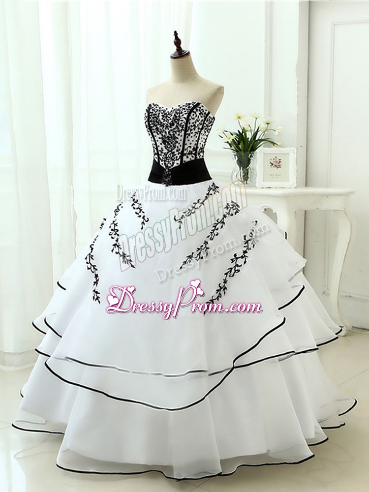 Neckline : SweetheartShown Color : WhiteSilhouette : Ball GownsSleeve Length : sleevelessHemline : floor lengthBack Detail : Lace upFabric : OrganzaEmbellishment : Beading,AppliquesOccasion : Military Ball,Sweet 16,QuinceaneraSeason : Spring,Summer,Fall,Winter