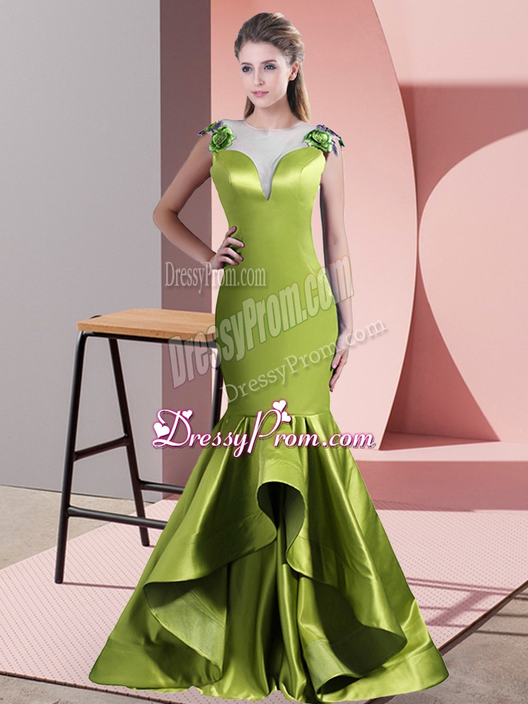 Neckline : ScoopShown Color : Green,Olive GreenSilhouette : MermaidSleeve Length : sleevelessBack Detail : Side zipperFabric : SatinEmbellishment : BeadingOccasion : Prom,PartySeason : Spring,Summer,Fall,Winter