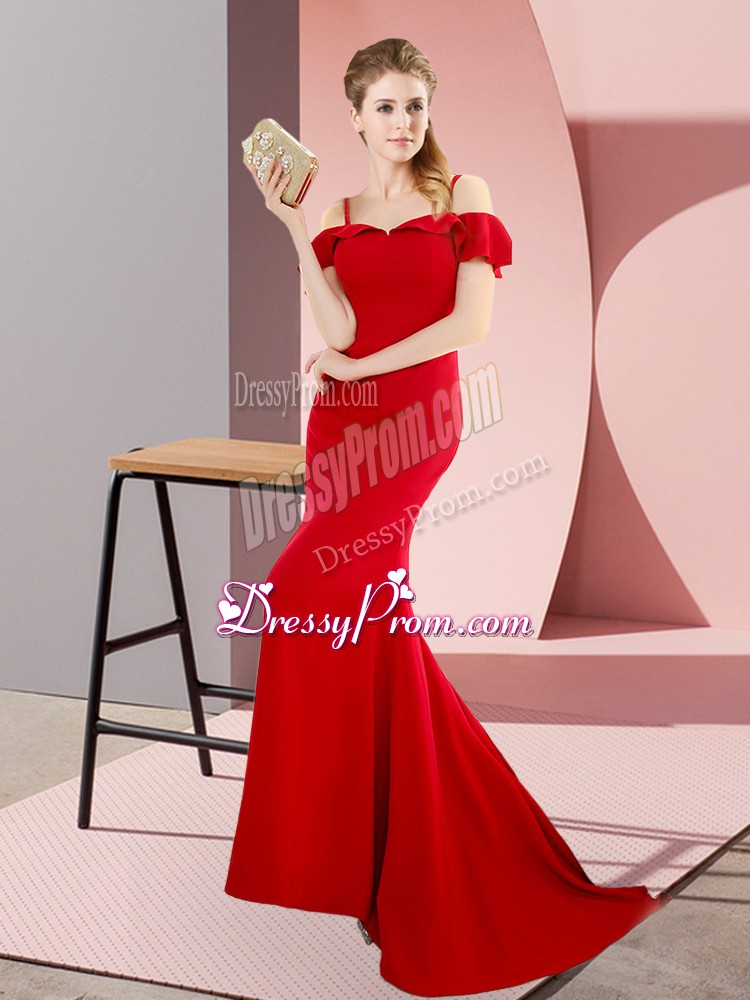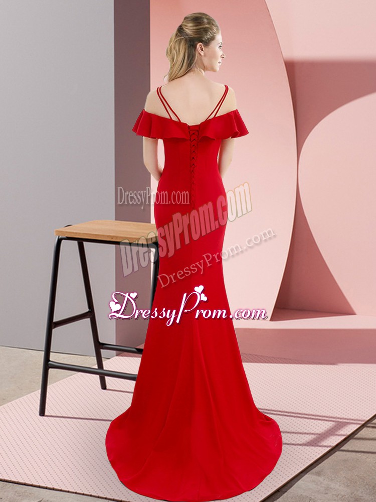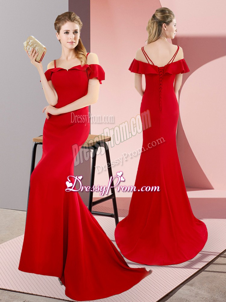 Neckline : StrapsShown Color : RedSilhouette : MermaidSleeve Length : sleevelessBack Detail : Lace upFabric : SatinEmbellishment : BeadingOccasion : Prom,Party,Military BallSeason : Spring,Summer,Fall,Winter
