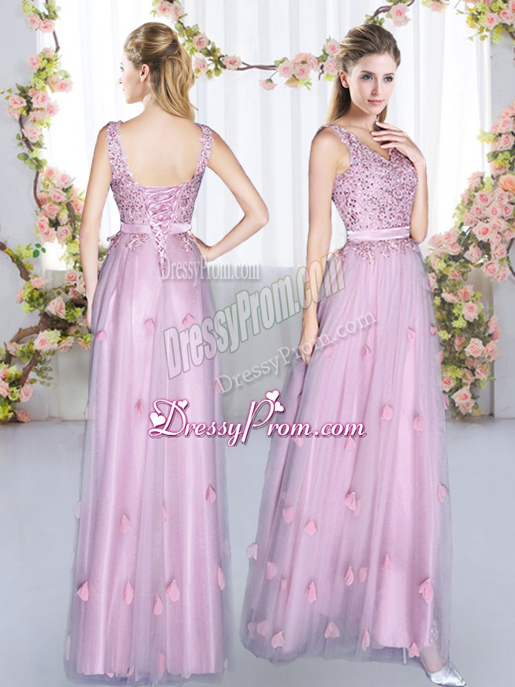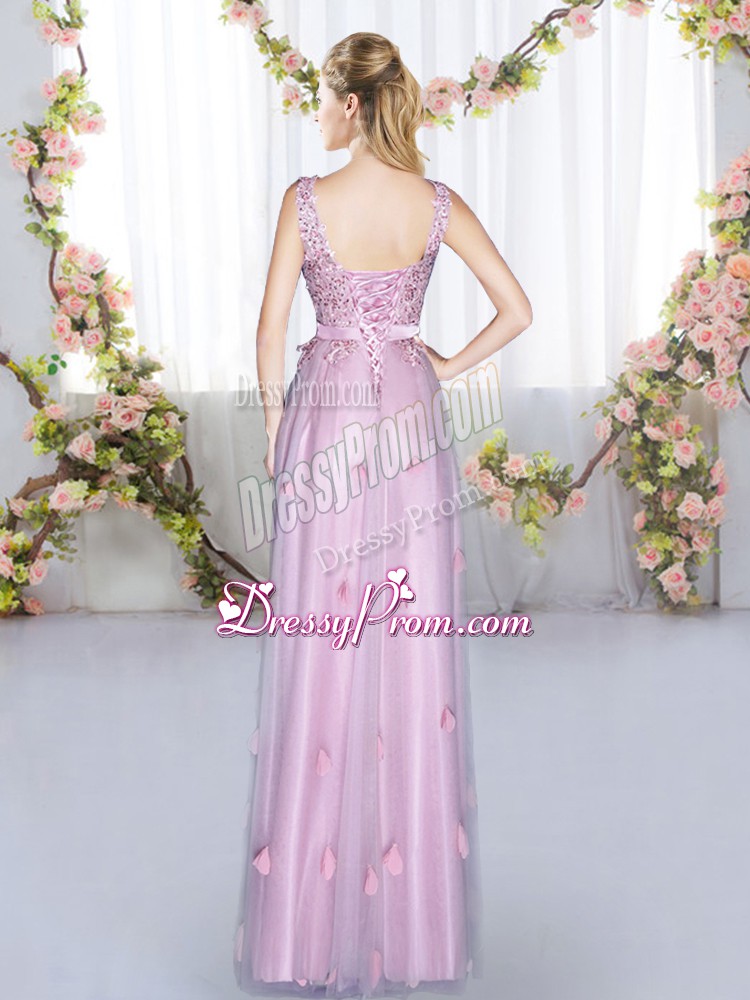 Neckline : V-neckShown Color : LavenderSilhouette : EmpireSleeve Length : sleevelessHemline : floor lengthBack Detail : Lace upFabric : TulleEmbellishment : Beading,AppliquesOccasion : Prom,Party,Wedding PartySeason : Spring,Summer,Fall,Winter