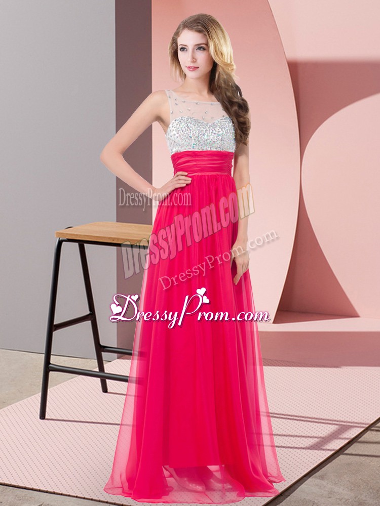 Neckline : ScoopShown Color : Coral RedSilhouette : EmpireSleeve Length : sleevelessHemline : floor lengthBack Detail : Side zipperFabric : ChiffonEmbellishment : SequinsOccasion : Prom,Party,Military BallSeason : Spring,Summer,Fall,Winter