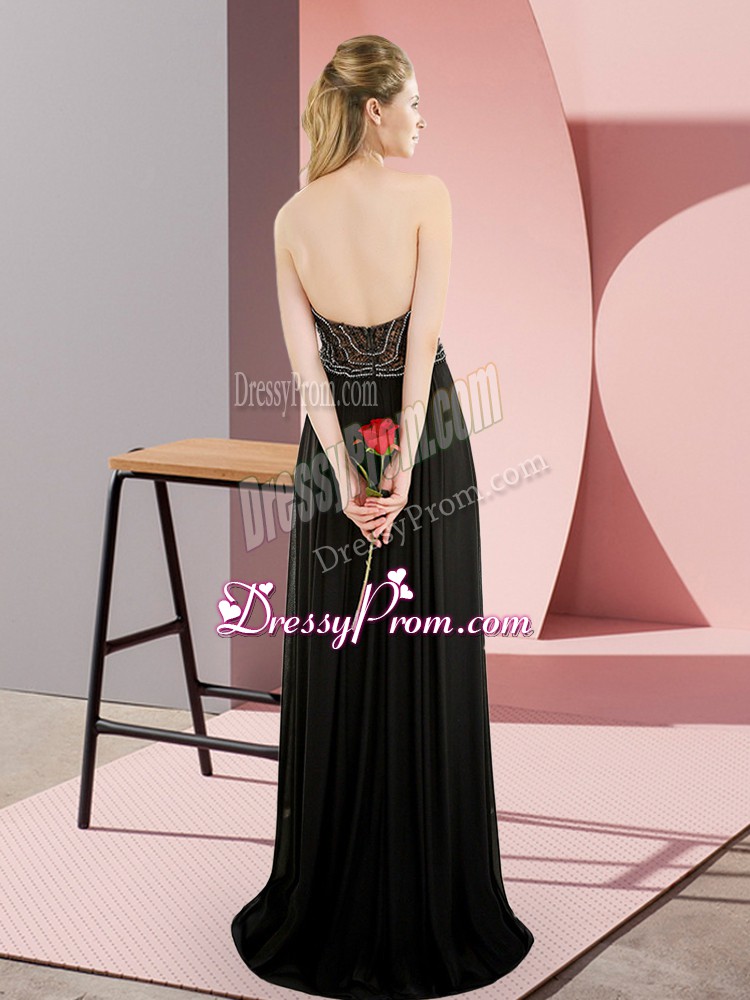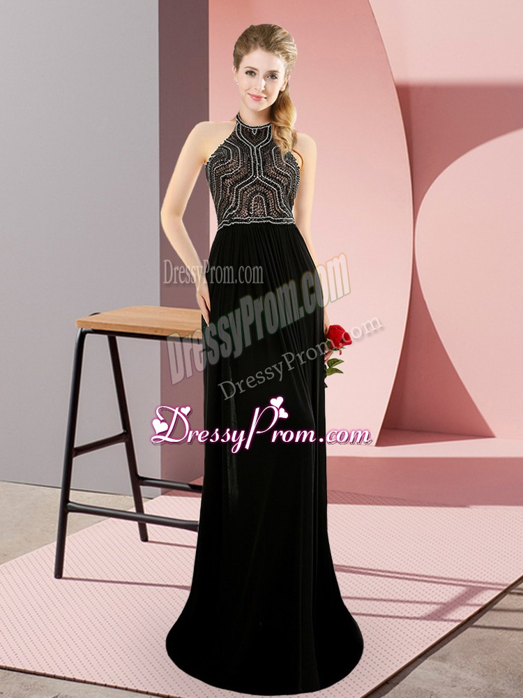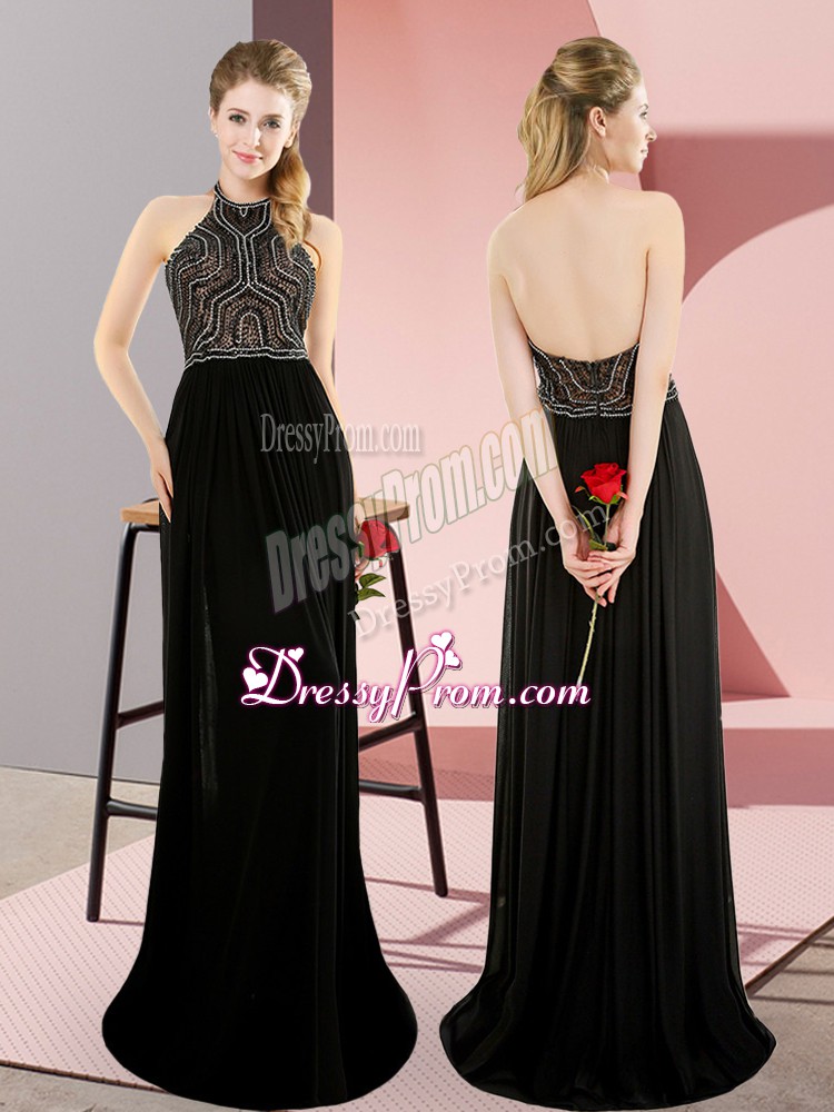 Neckline : High-neckShown Color : BlackSilhouette : Column/SheathSleeve Length : sleevelessBack Detail : BacklessFabric : ChiffonEmbellishment : BeadingOccasion : Prom,Party,Military BallSeason : Spring,Summer,Fall,Winter