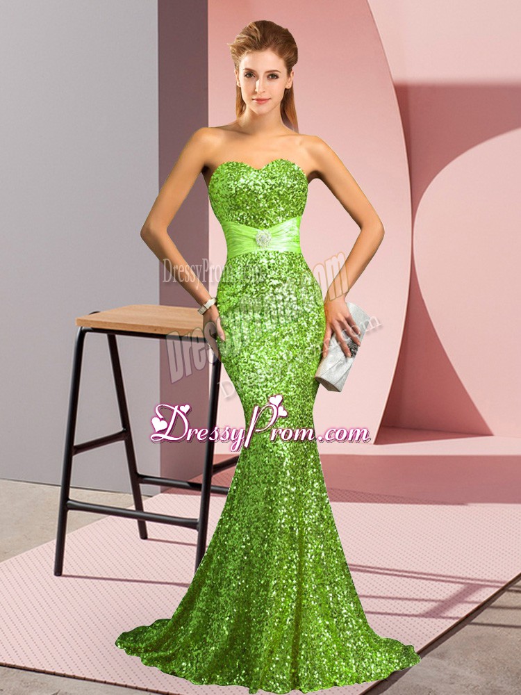 Neckline : SweetheartShown Color : Spring GreenSilhouette : MermaidSleeve Length : sleevelessBack Detail : ZipperFabric : SequinedEmbellishment : BeadingOccasion : Prom,Party,Military BallSeason : Spring,Summer,Fall,Winter