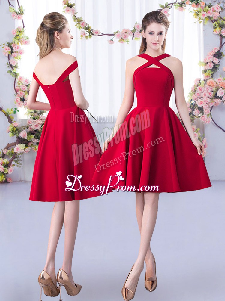 Neckline : StrapsShown Color : RedSilhouette : A-lineSleeve Length : sleevelessHemline : knee lengthBack Detail : ZipperFabric : SatinEmbellishment : RuchingOccasion : Prom,Party,Wedding PartySeason : Spring,Summer,Fall