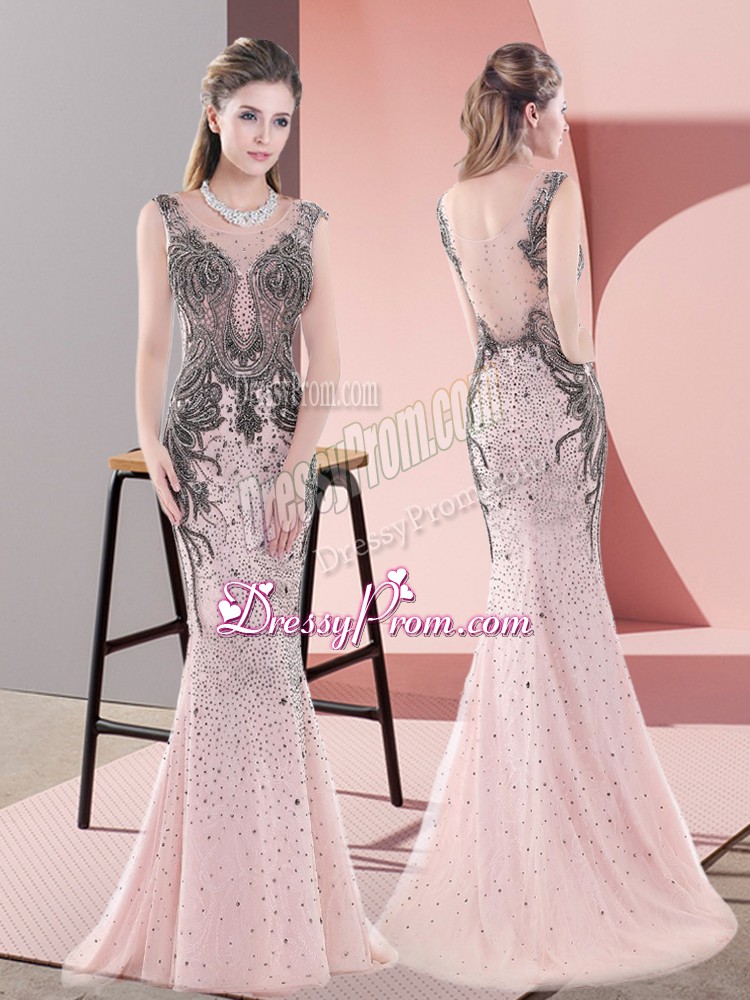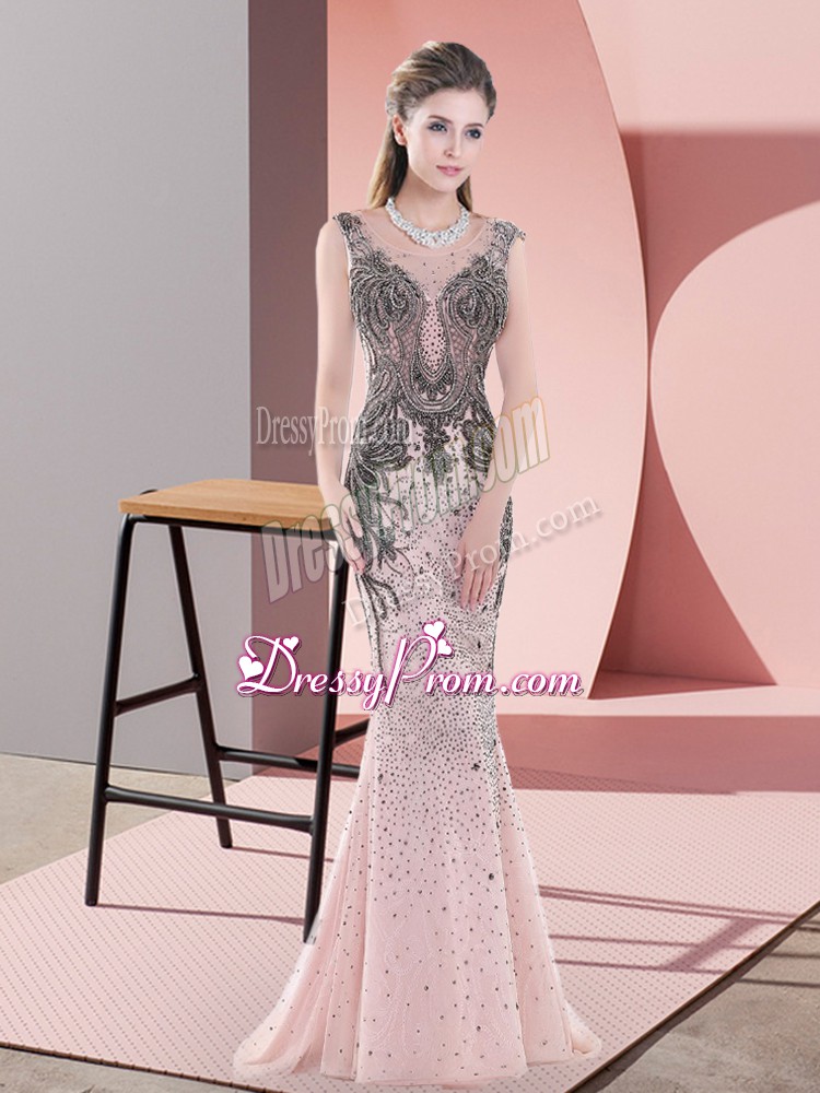 Neckline : ScoopShown Color : Pink Silhouette : EmpireSleeve Length : sleevelessBack Detail : Side zipperFabric : TulleEmbellishment : Beading,LaceOccasion : Prom,PartySeason : Spring,Summer,Fall,Winter