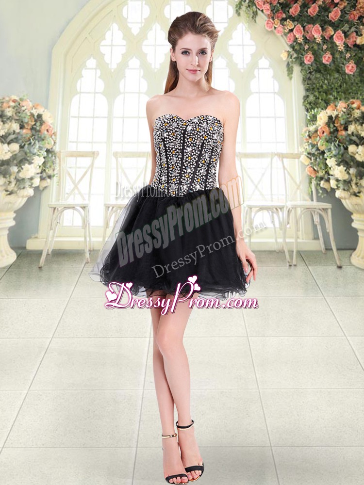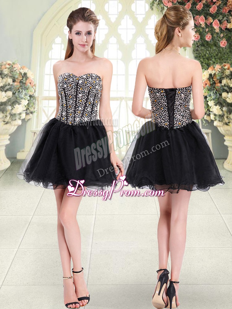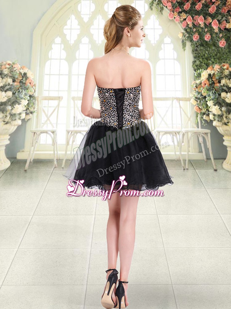 Charming Mini Length Black Prom Dresses Sweetheart Sleeveless Lace Up