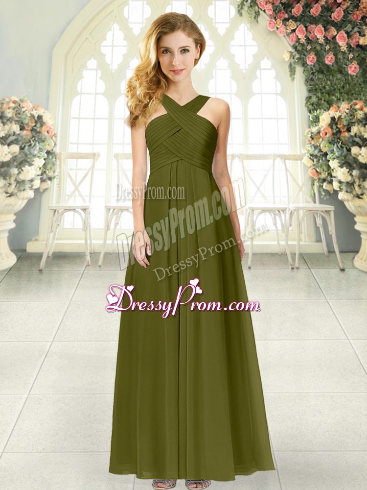 Neckline : StrapsShown Color : Olive GreenSilhouette : EmpireSleeve Length : sleevelessHemline : floor lengthBack Detail : ZipperFabric : ChiffonEmbellishment : RuchingOccasion : Prom,PartySeason : Spring,Summer,Fall,Winter