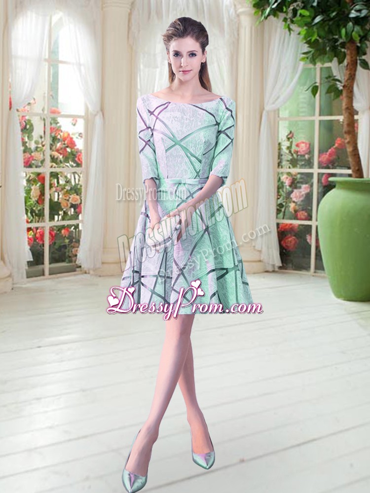 Neckline : ScoopShown Color : Apple GreenSilhouette : A-lineSleeve Length : half sleevesHemline : knee lengthBack Detail : Lace upEmbellishment : RuchingOccasion : Prom,PartySeason : Spring,Summer,Fall