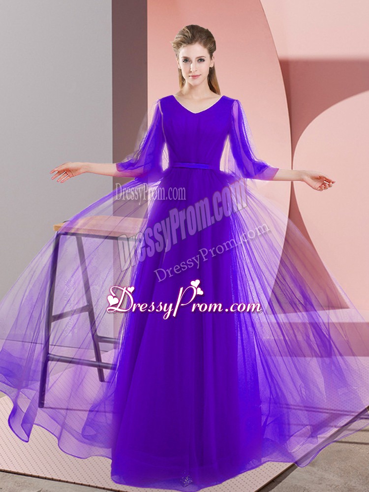 Neckline : V-neckShown Color : PurpleSilhouette : A-lineSleeve Length : long sleevesHemline : floor lengthBack Detail : ZipperFabric : TulleEmbellishment : BeadingOccasion : Prom,PartySeason : Spring,Summer,Fall,Winter
